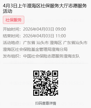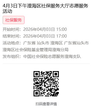 2026年3月30日至4月3日市社保局澄海分局大厅志愿服务活动,需要每一个可爱的你参与!