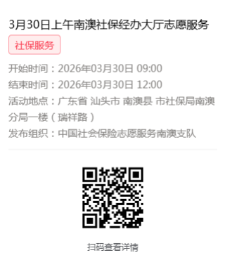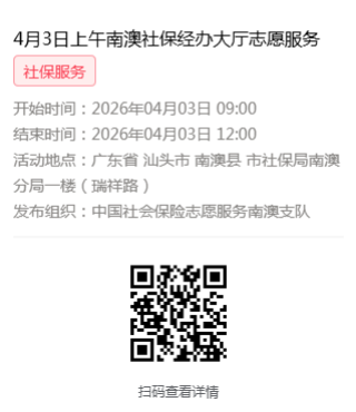 2026年3月30日至4月3日市社保局南澳分局大厅志愿服务活动,需要每一个可爱的你参与!