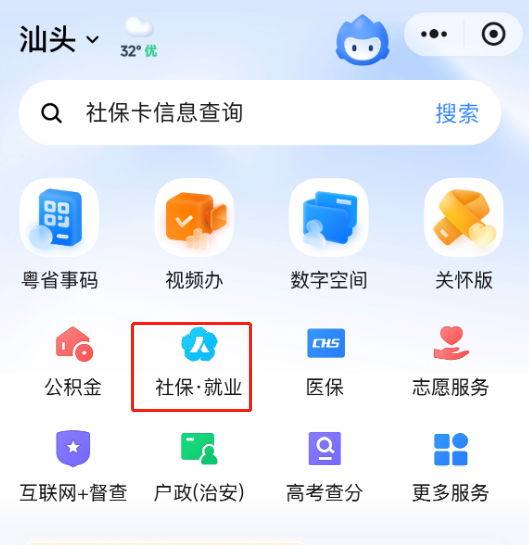 登录“粤省事”微信小程序,进入“粤省事”微信小程序。点击“社
