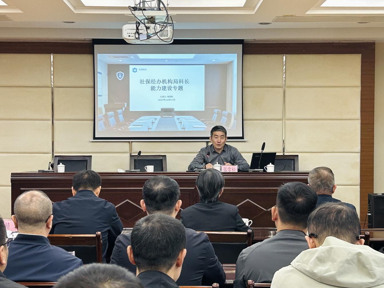 随后,省社保局党委委员、纪委书记张雪松同志围绕五个方面为参训人员作社保履职能力建设专题授课,一是善于主动学习政治理论,筑牢“两个维护”的思想根基;二是善于发现问题并因地制宜解决问题,锤炼攻坚克难的实战能力;三是善用干部,凝聚干事创业的队伍合力;四是敢于和善于做群众工作,提升为民服务的能力水平;五是会抓作风,树立清正廉洁的良好形象。
