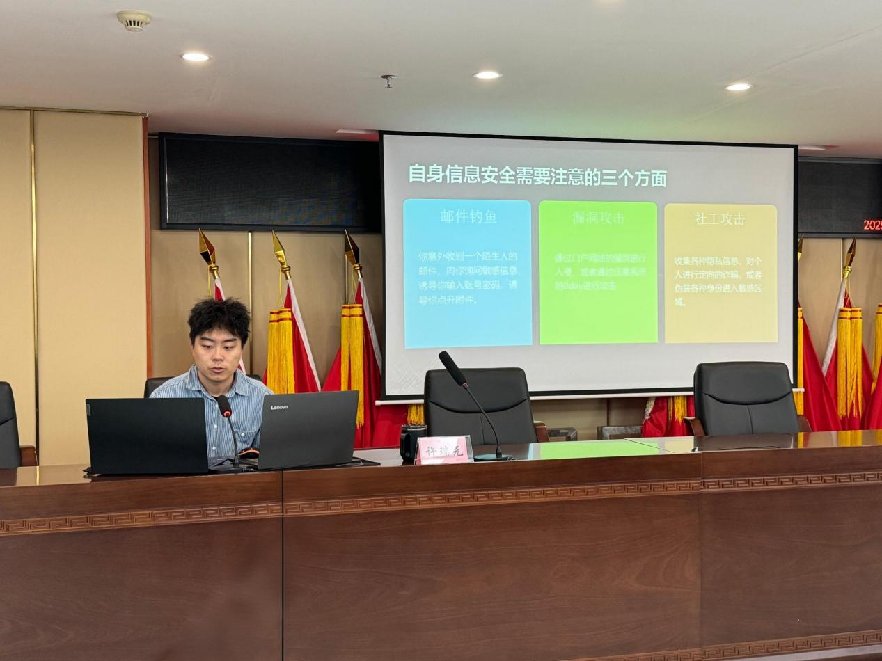 为深入贯彻落实党的二十大和党的二十届四中全会精神,认真学习领会习近平总书记在中央政治局第二十三次集体学习时关于加强网络生态治理的重要讲话,全面提升全局干部职工的数据安全保护意识和综合防护能力,市社保局于近期组织召开了2025年网络安全专题培训会。市局各科室、各分局有关人员共21人参加了本次培训。