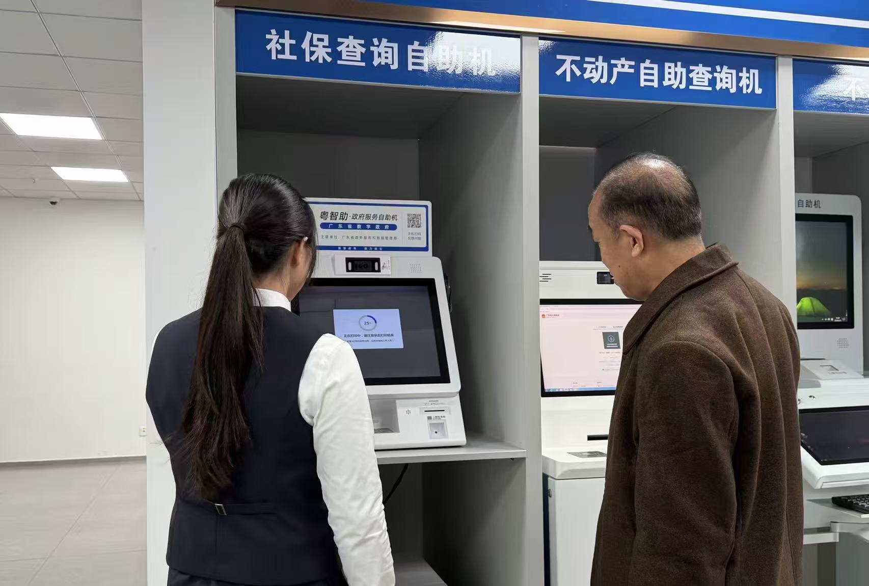 功能集成,实现一机多能办理。“粤智助”自助设备整合了社保、医保、税务、民政等多个高频政务服务领域的业务办理与查询功能。用户通过直观易懂的操作界面,可自主完成多项业务的申办、查询、打印等操作,避免了以往办理不同业务需辗转多个部门的奔波,显著节省了办事成本与时间。对于一些操作不熟练的群众,社保志愿者们会耐心讲解,并手把手引导他们自主办理业务。