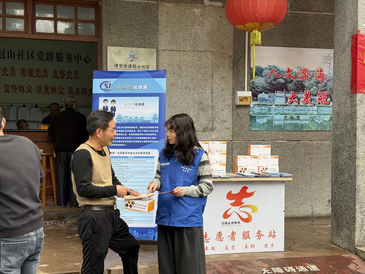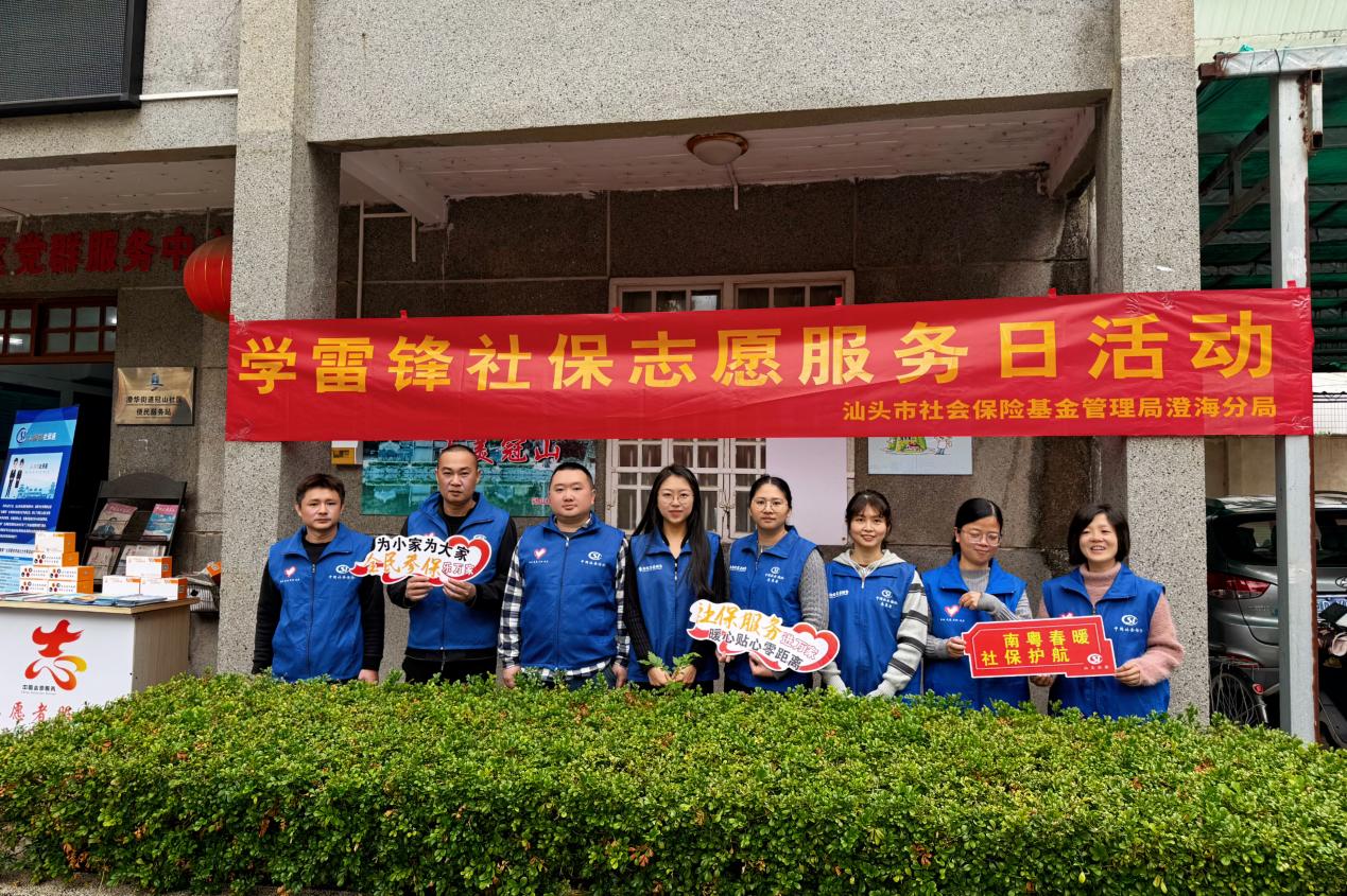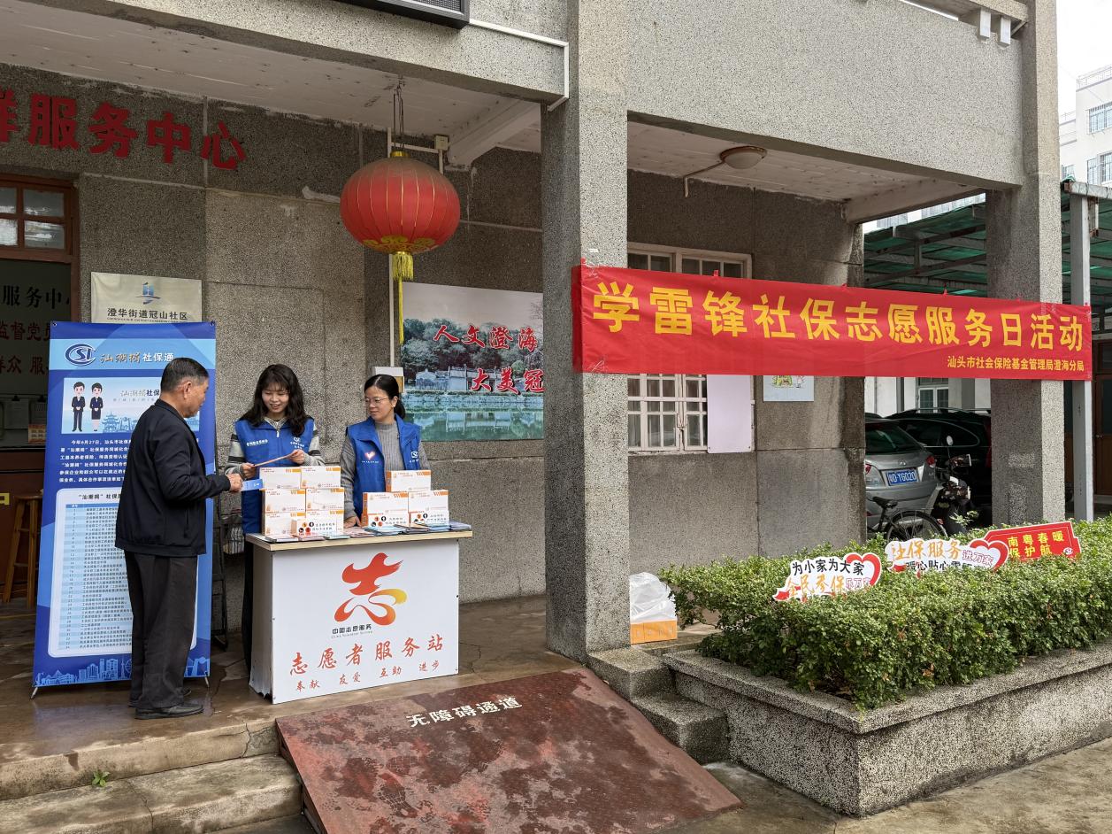 为深入学习贯彻习近平总书记关于弘扬雷锋精神的重要指示精神,推动社保志愿服务常态化、精准化,2026年2月5日,汕头市社保局澄海分局联合区人力资源和社会保障局、冠山居委会、中国人寿保险澄海支公司,走进冠山党群服务中心,开展以“社保服务进社区 暖心认证惠民生”为主题的学雷锋社保志愿服务日活动。活动聚焦基层群众需求,通过政策宣讲、集中认证、上门服务等形式,将社保服务送到居民“家门口”,以实际行动诠释新时代雷锋精神的深刻内涵。