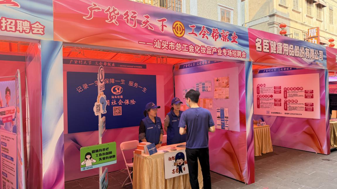 春风送暖,“职”引未来;广货飘香,筑梦鮀城。近日,由市总工会主办、市社保局参与协办的“广货天下行 工会帮就业”化妆品产业专场招聘会在小公园国平南路举行。