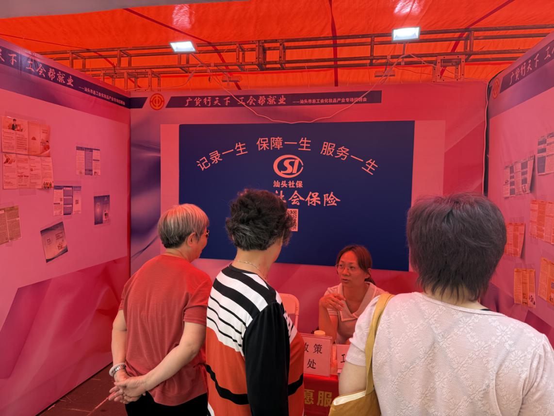 在为期3天的招聘会上,小公园国平南路人声鼎沸、暖意融融。本次招聘会打破传统招聘的单一局限,将“广货展销”与“人才招聘”深度绑定、双向赋能,既体现了人才对接的深度,更有广货推广的热度。市社保局充分利用招聘会现场的影响度和热度,贴合职工的保障需求,联合金平、龙湖、濠江3个社保分局精准宣传养老、工伤、失业等不同险种的政策,为求职者撑起社会保障的“保护伞”。在精准开展社保政策宣传的同时,市社保局也结合招聘会周边外地游客、本地商户聚集特点,组织社保志愿者因地制宜、分类施策,面向不同群体开展政策宣传服务,取得较好的宣传效果。