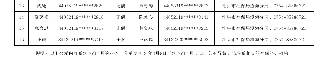 市社保局澄海分局《直系亲属申请领取已故人员死亡待遇的公示表》(2026.04.13)