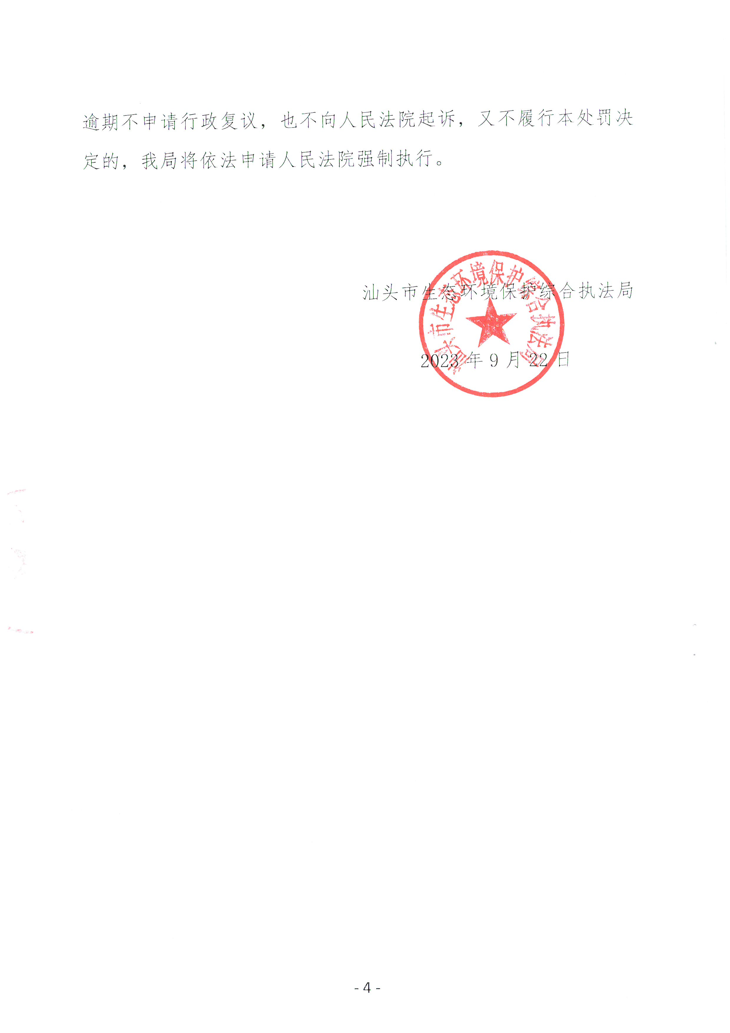 【金平】行政处罚决定书(汕环执罚〔2023〕150号)
