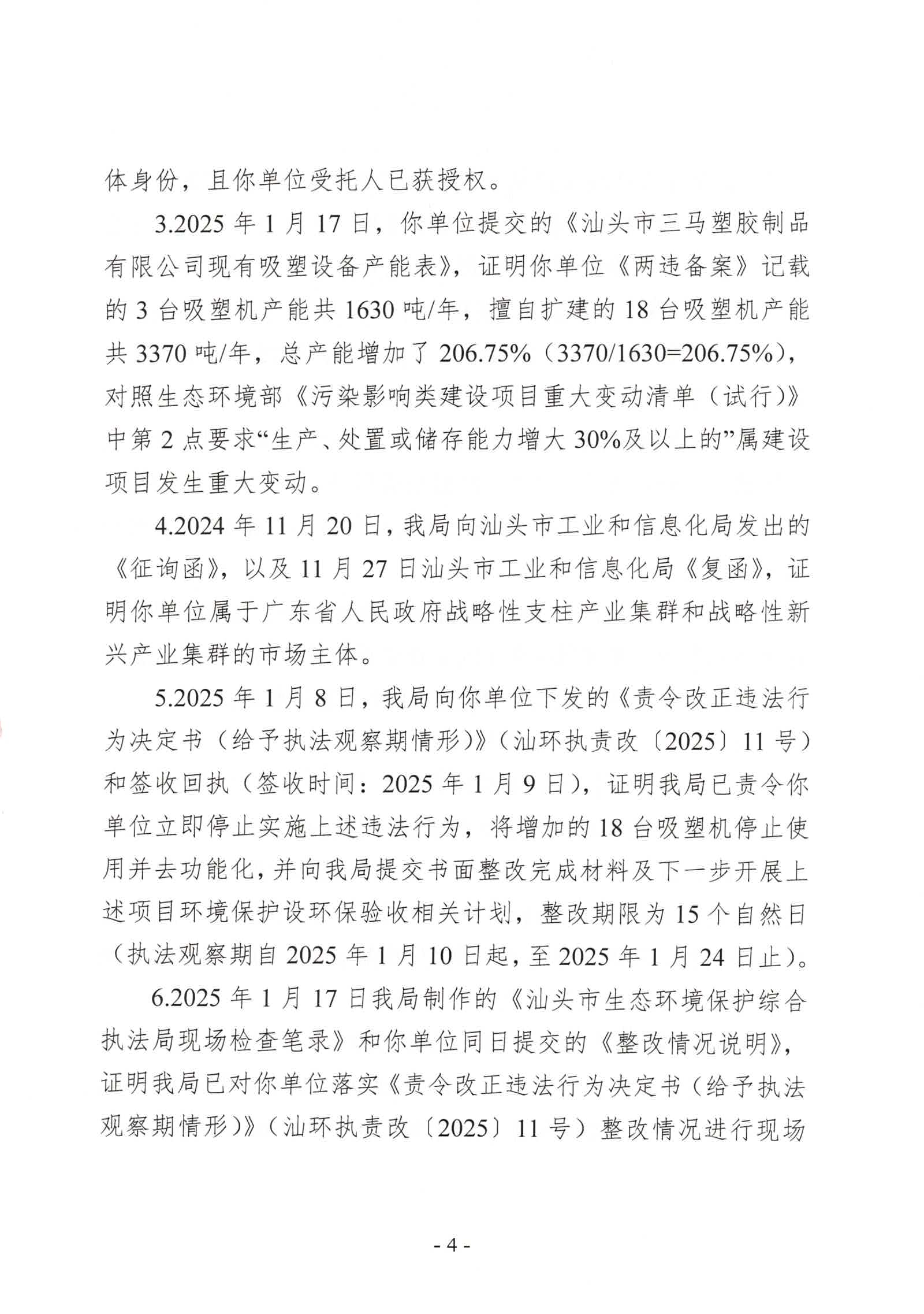 不予行政处罚决定书(汕环执不罚〔2025〕4号)
