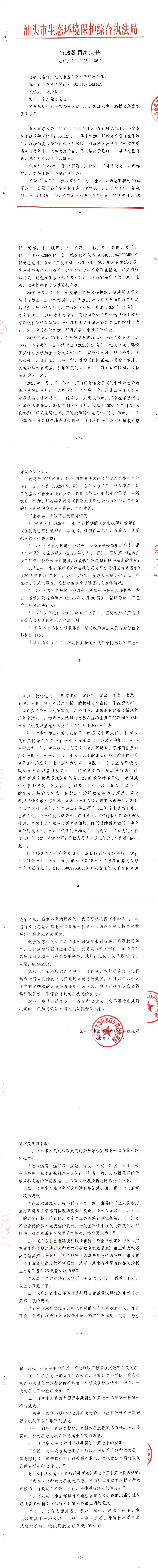 【金平】行政处罚决定书(汕环执罚〔2025〕106)