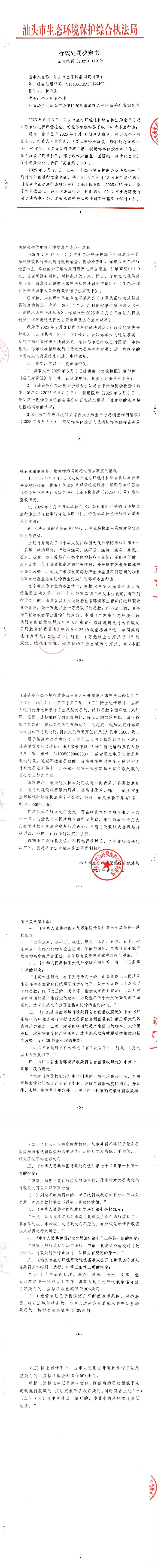 【金平】行政处罚决定书(汕环执罚〔2025〕119)