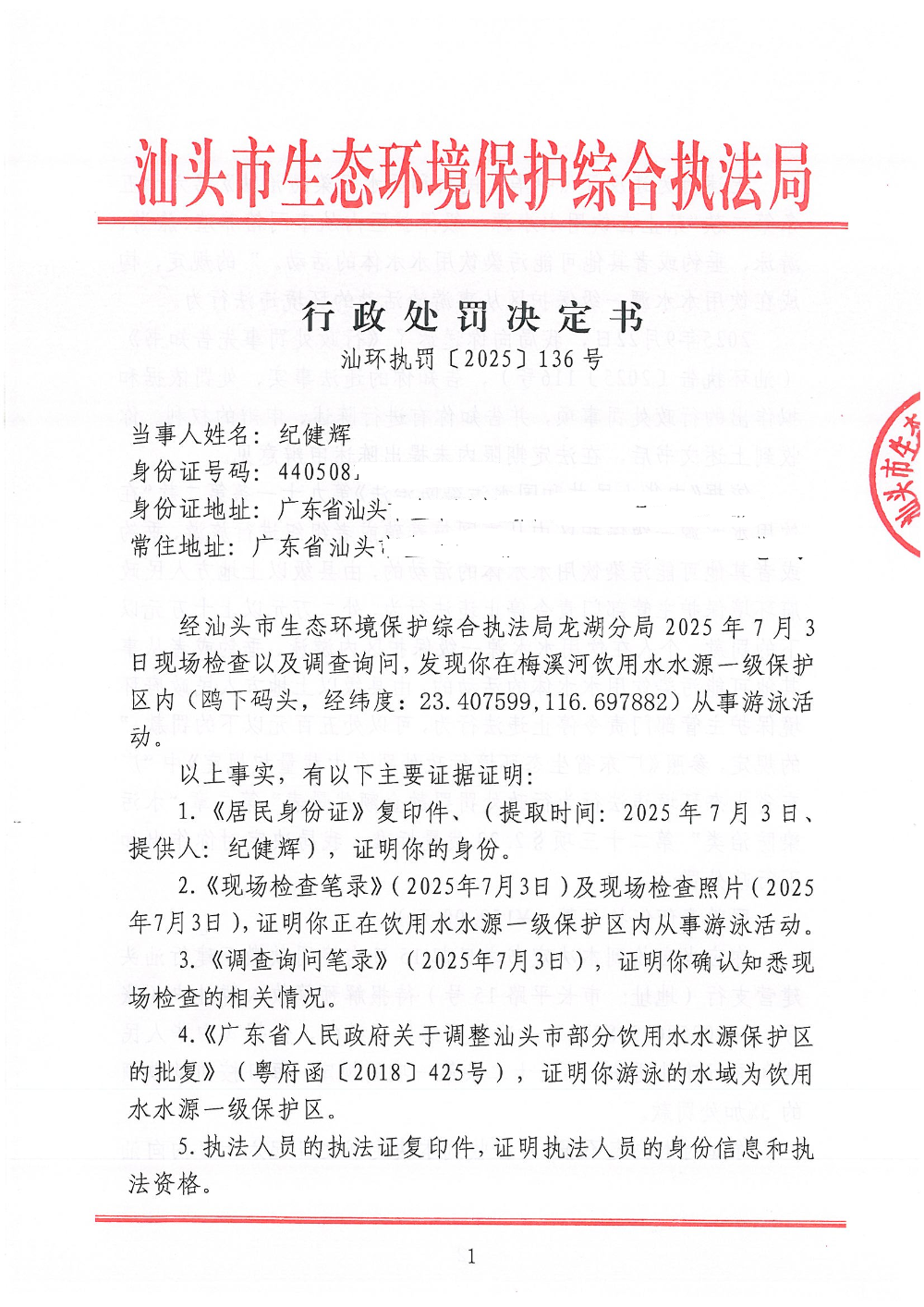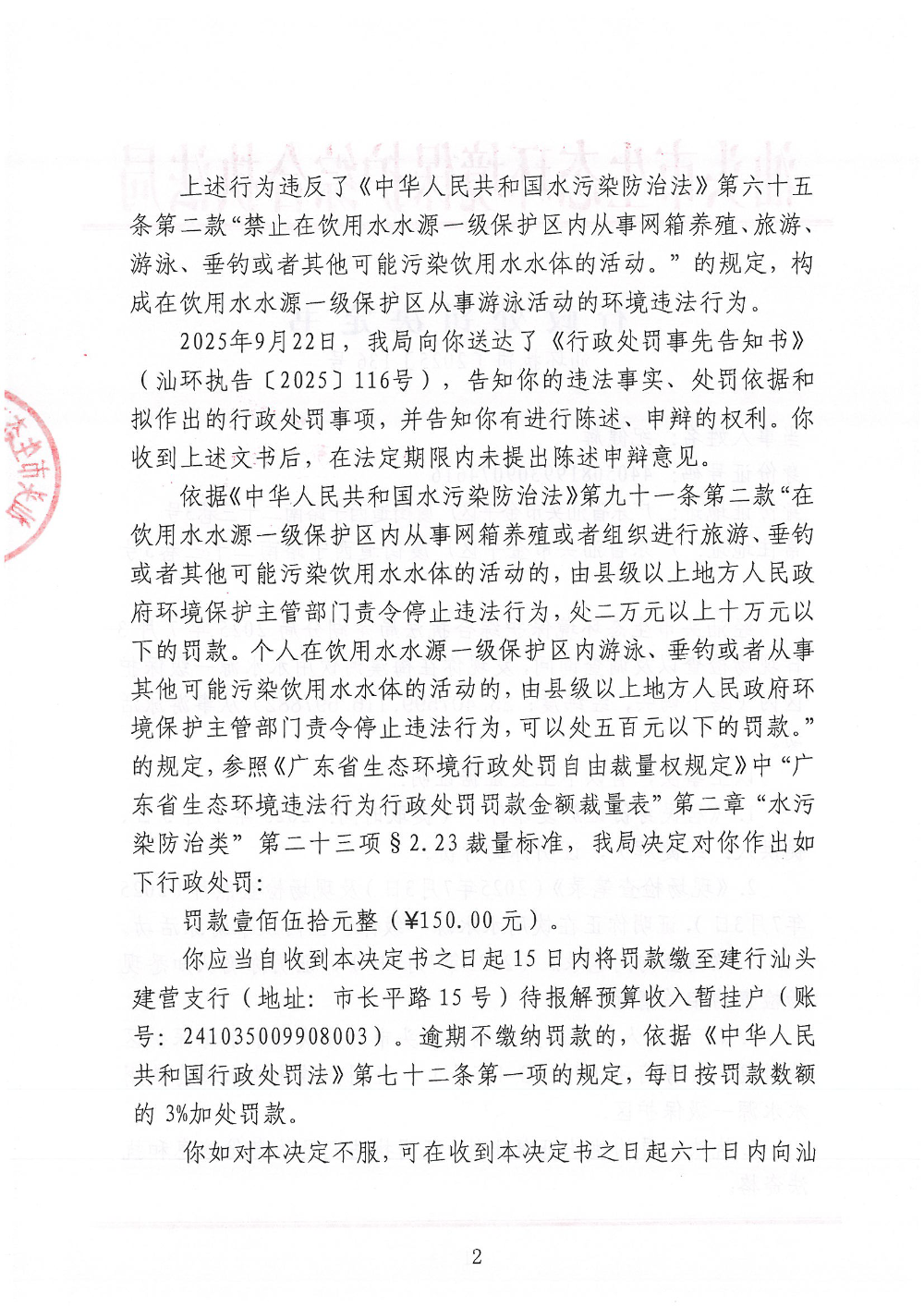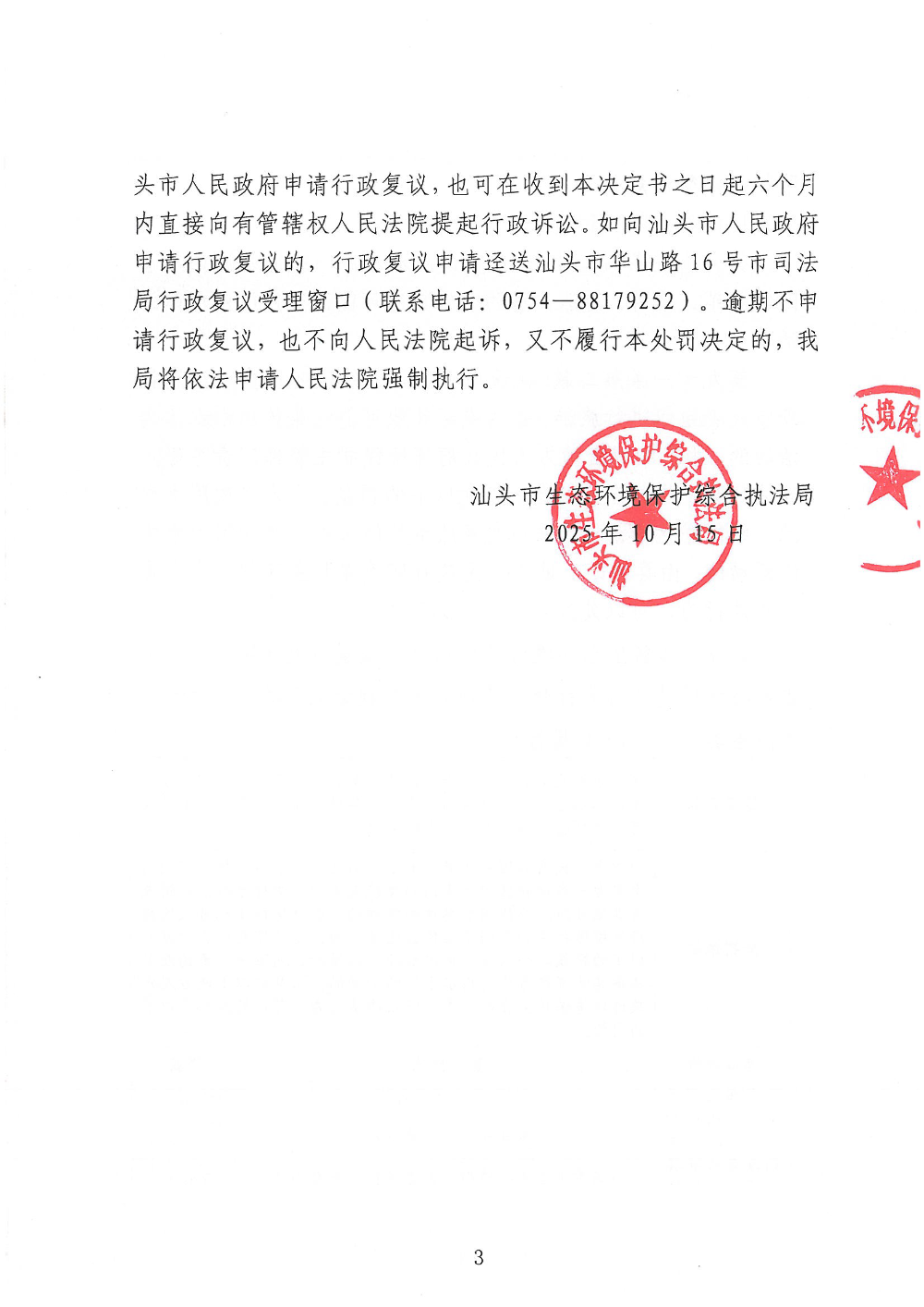 【龙湖】行政处罚决定书(汕环执罚〔2025〕136号)