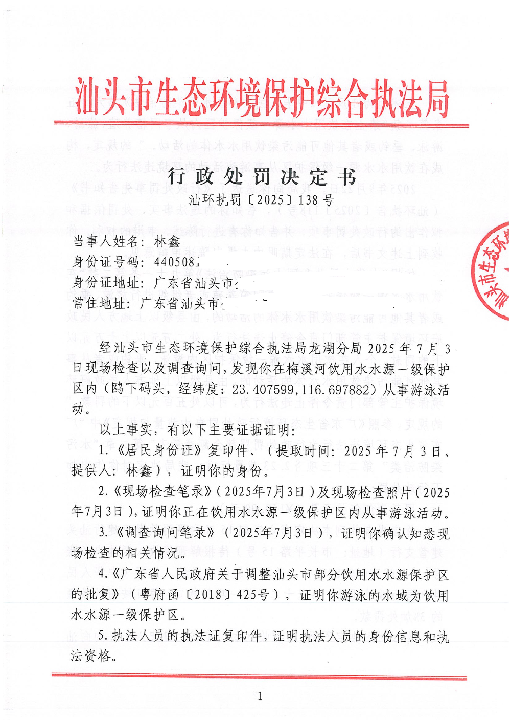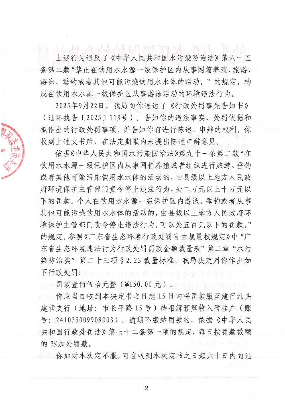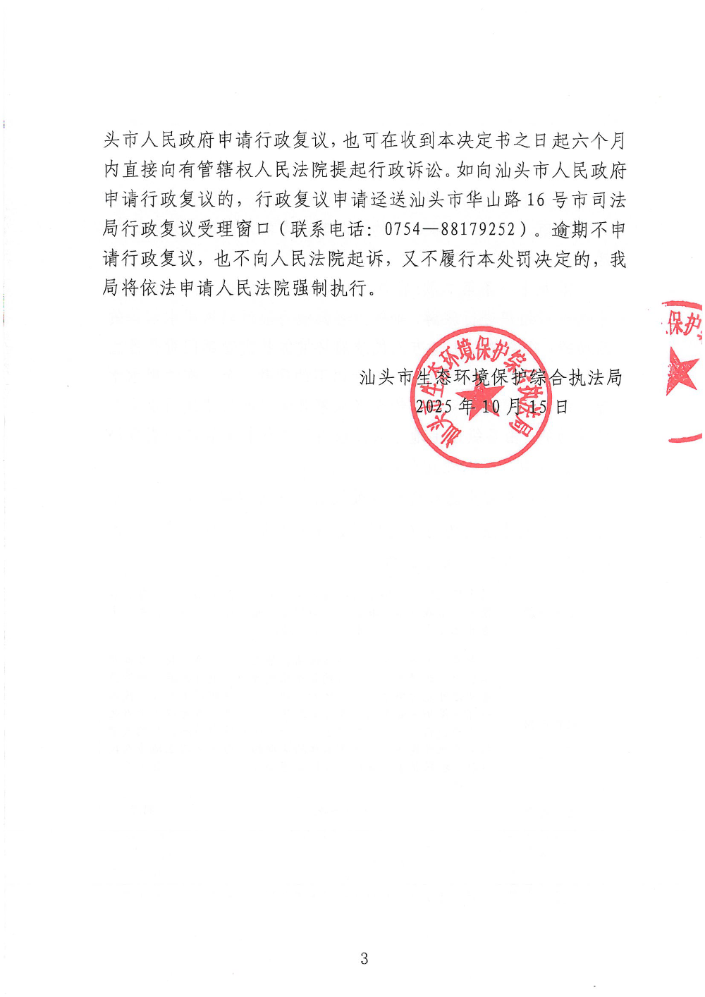 【龙湖】行政处罚决定书(汕环执罚〔2025〕138号)