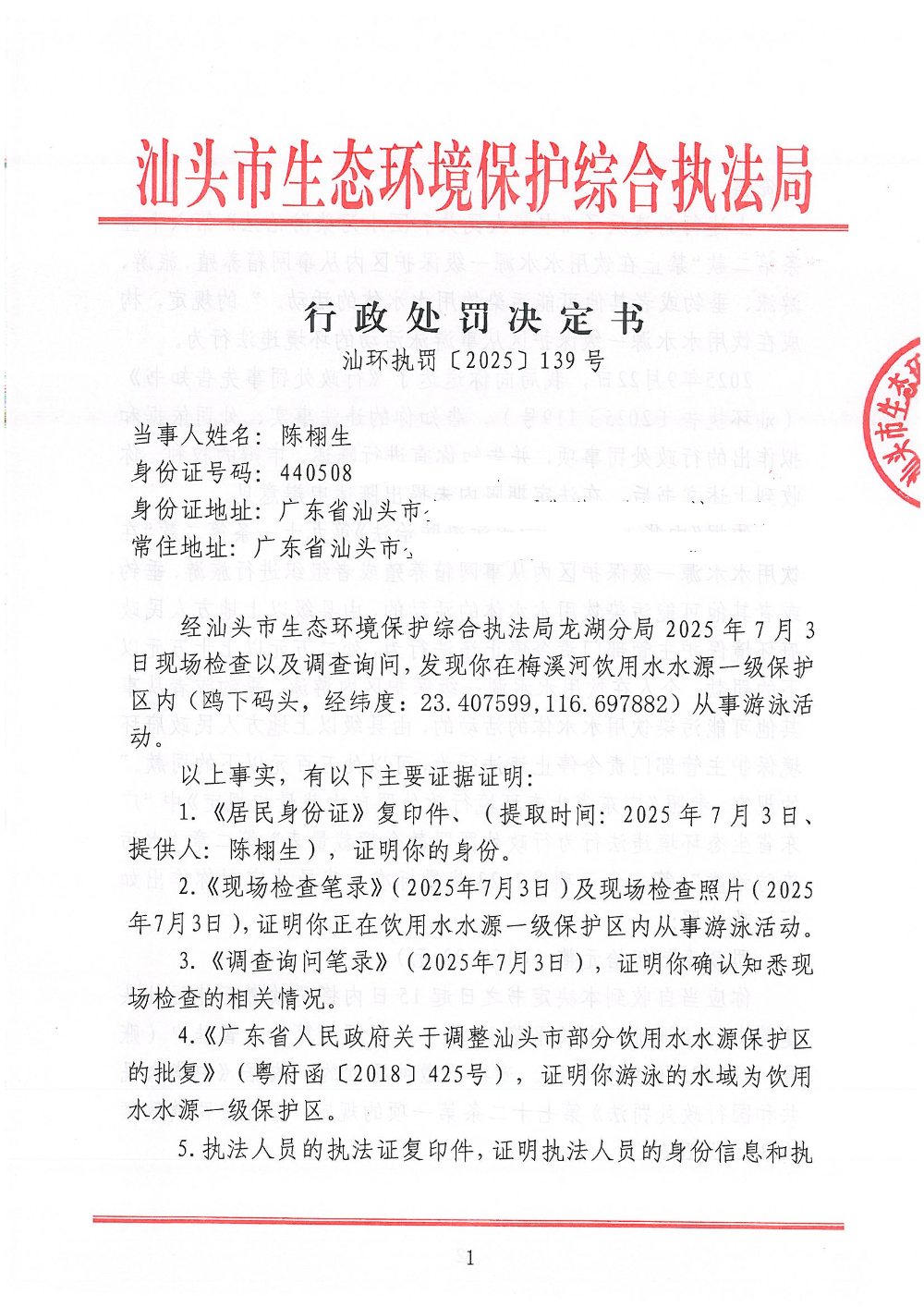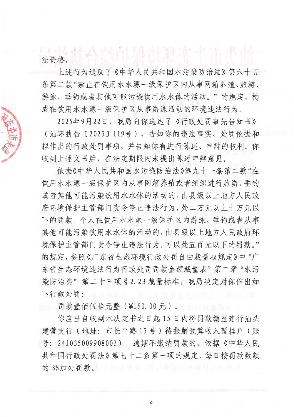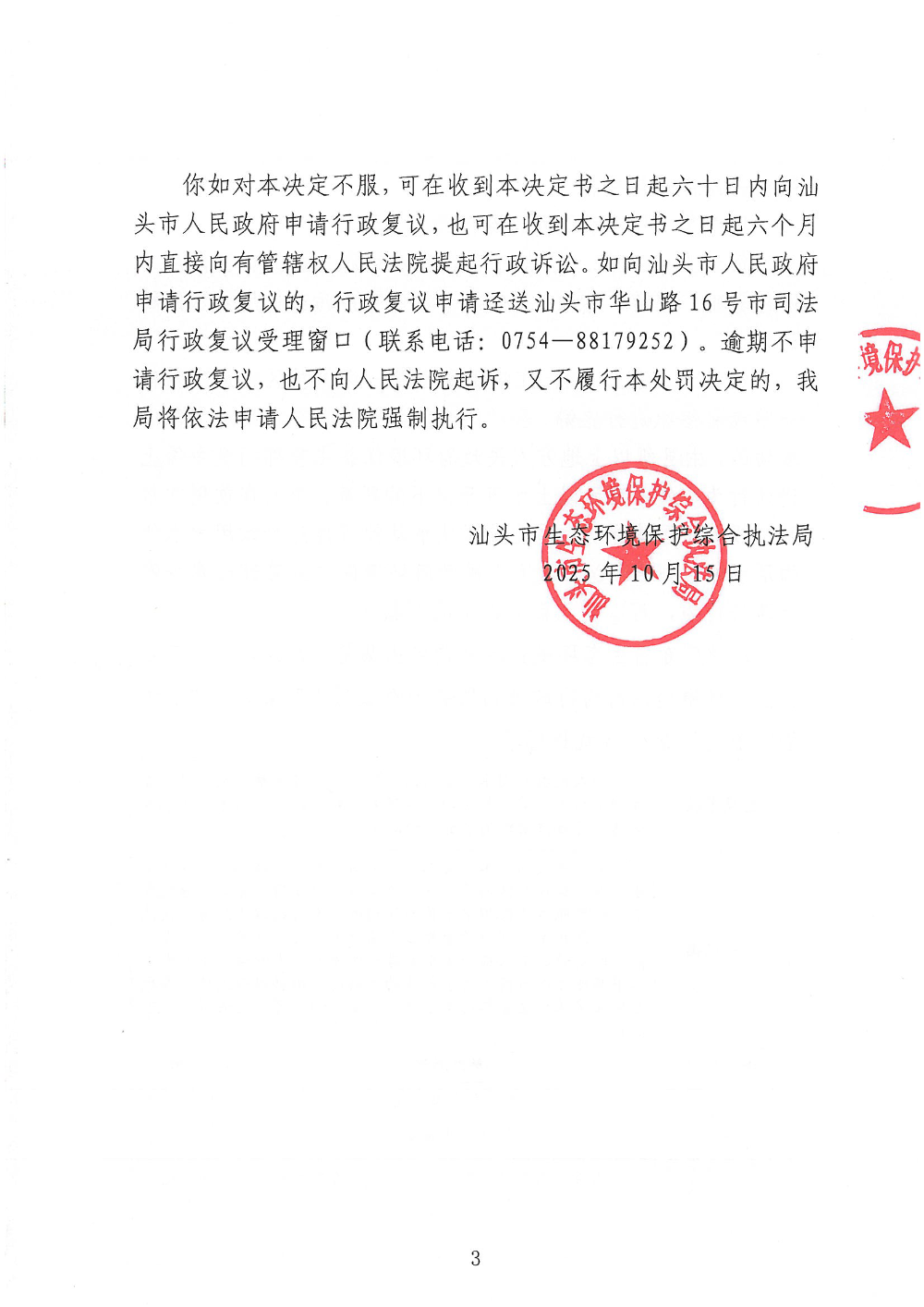 【龙湖】行政处罚决定书(汕环执罚〔2025〕139号)