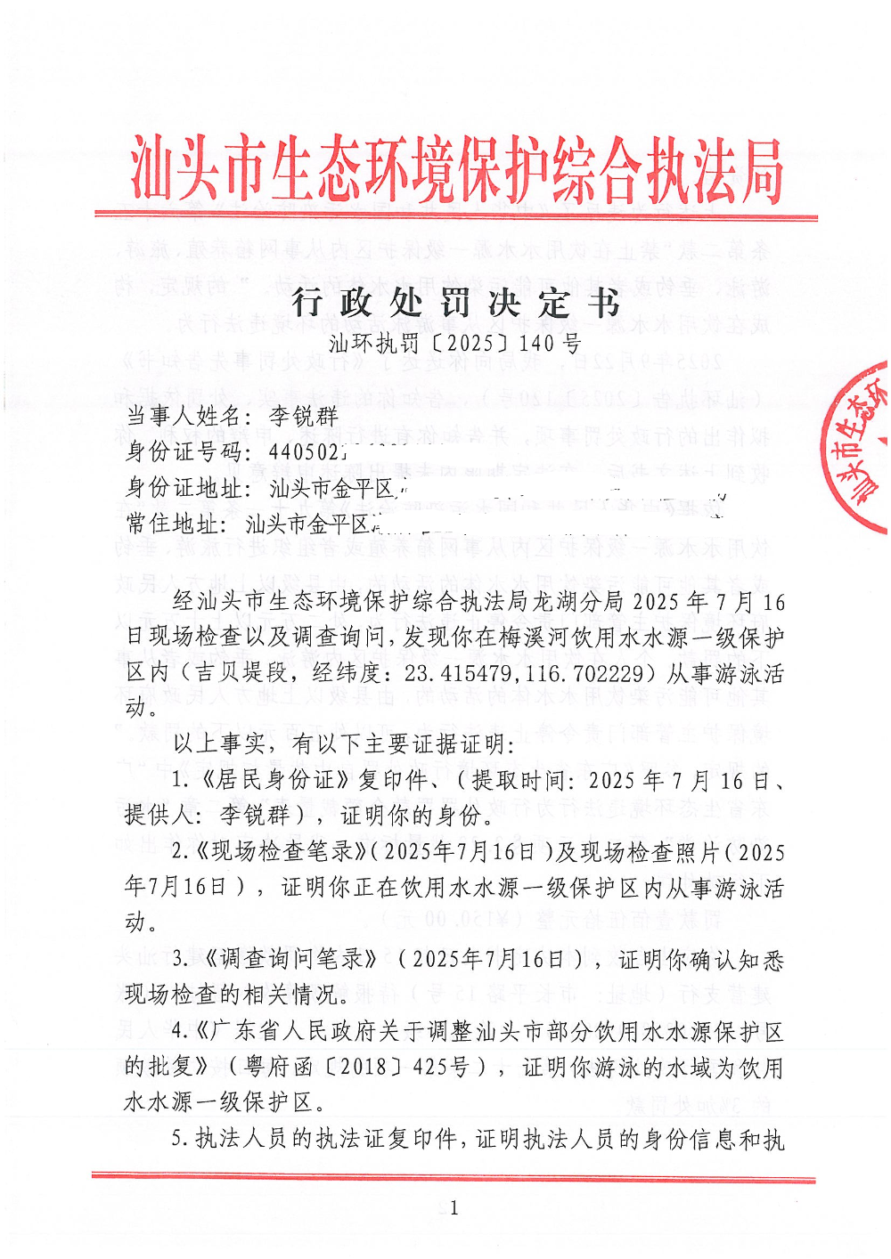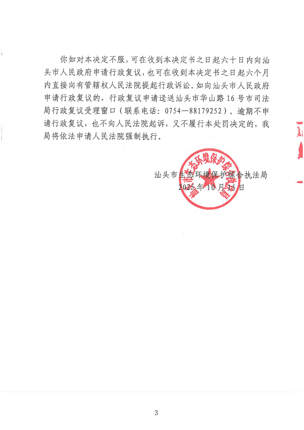 【龙湖】行政处罚决定书(汕环执罚〔2025〕140号)