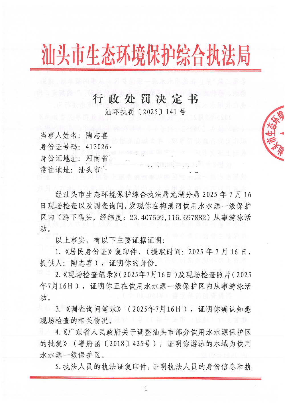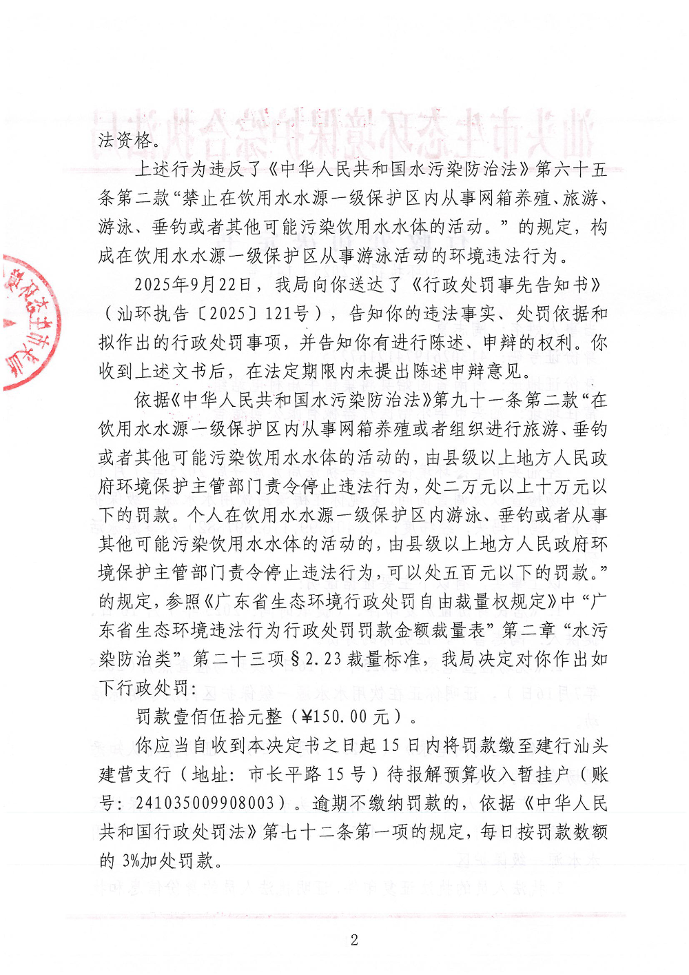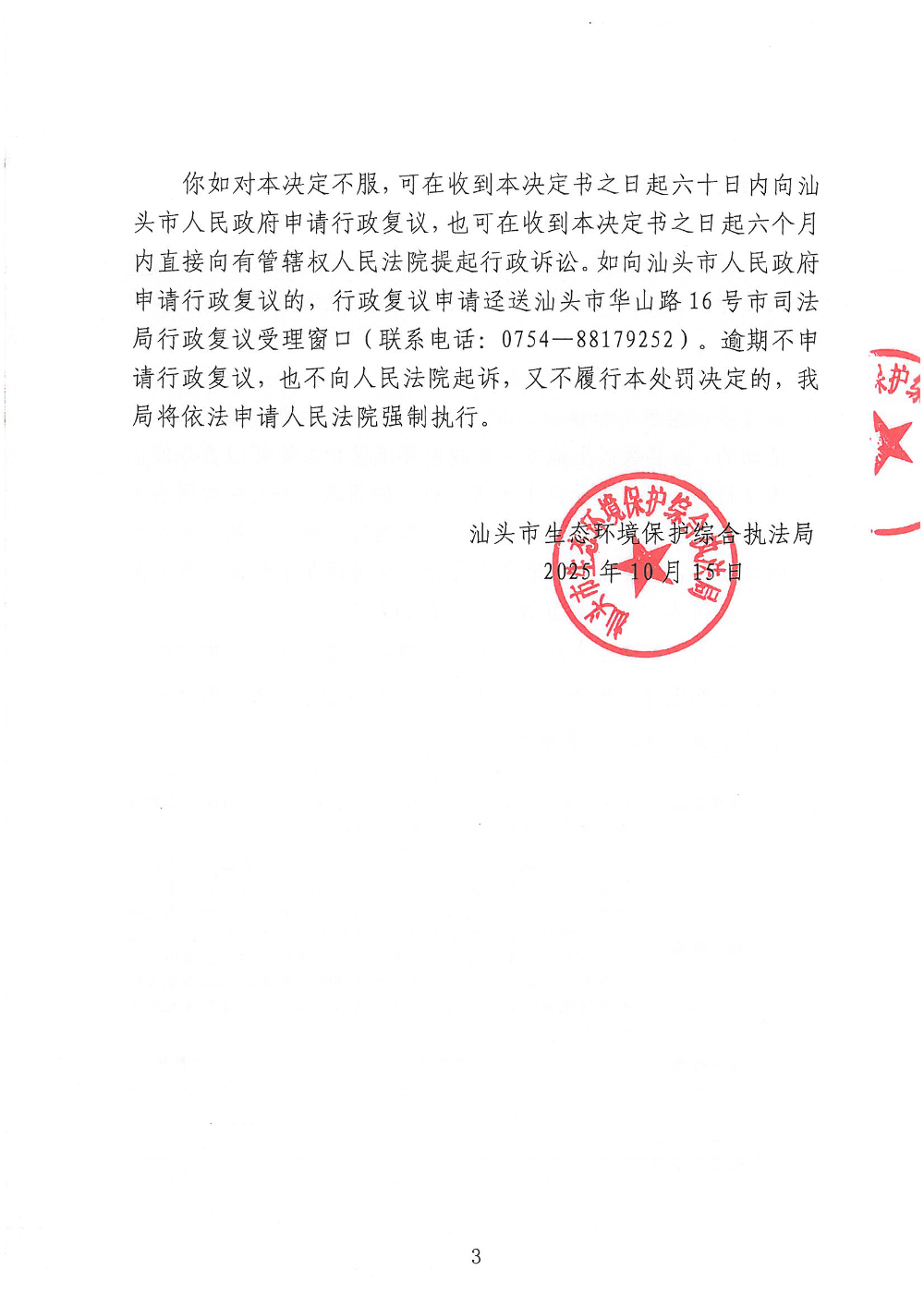 【龙湖】行政处罚决定书(汕环执罚〔2025〕141号)