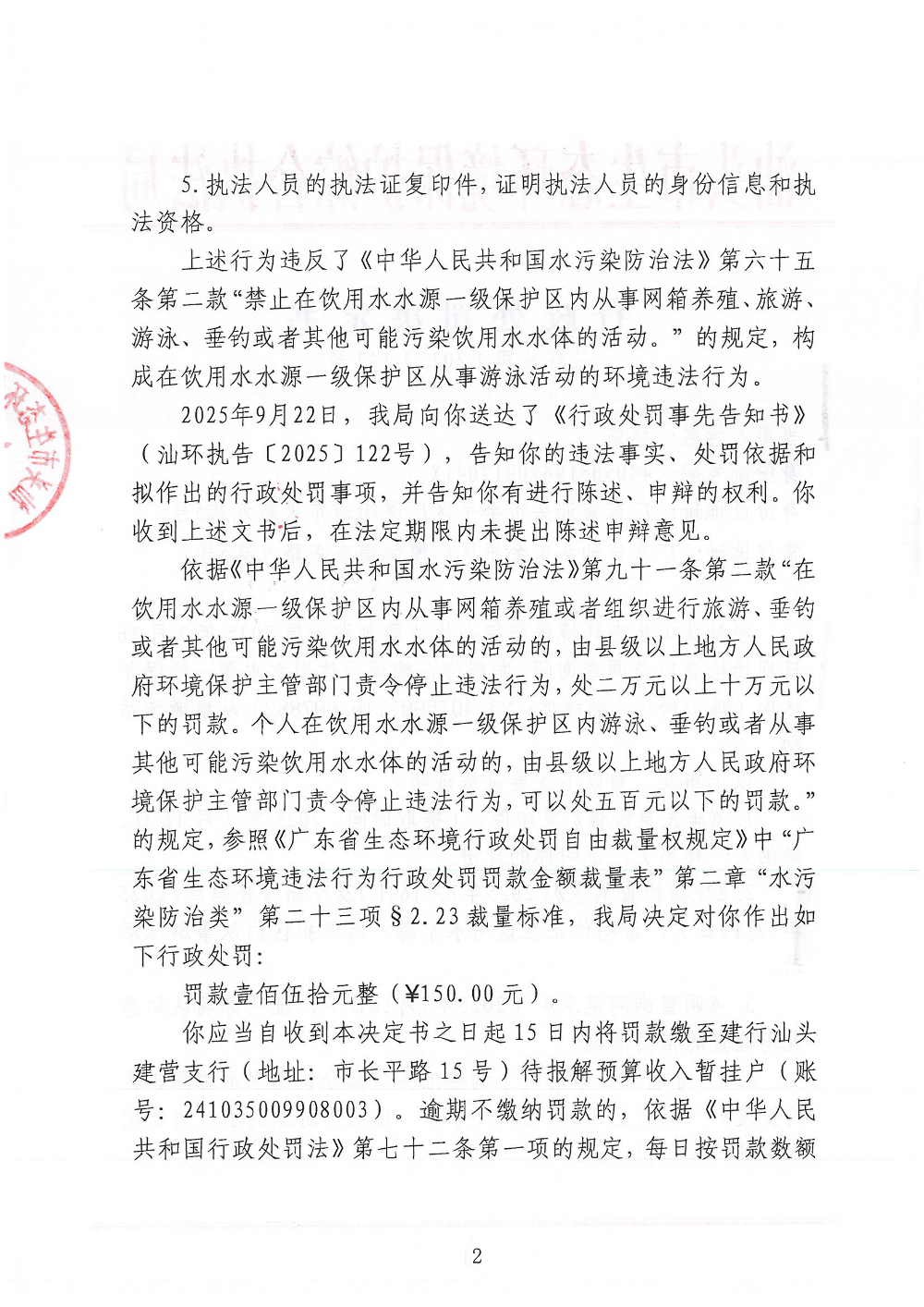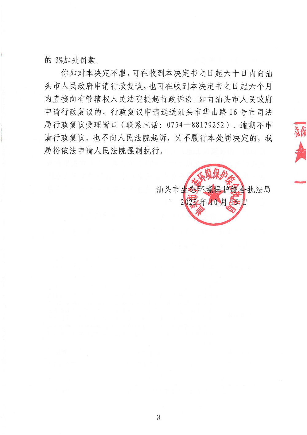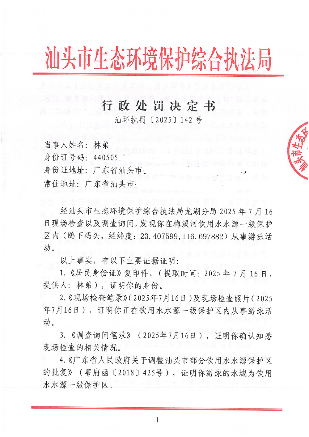 【龙湖】行政处罚决定书(汕环执罚〔2025〕142号)
