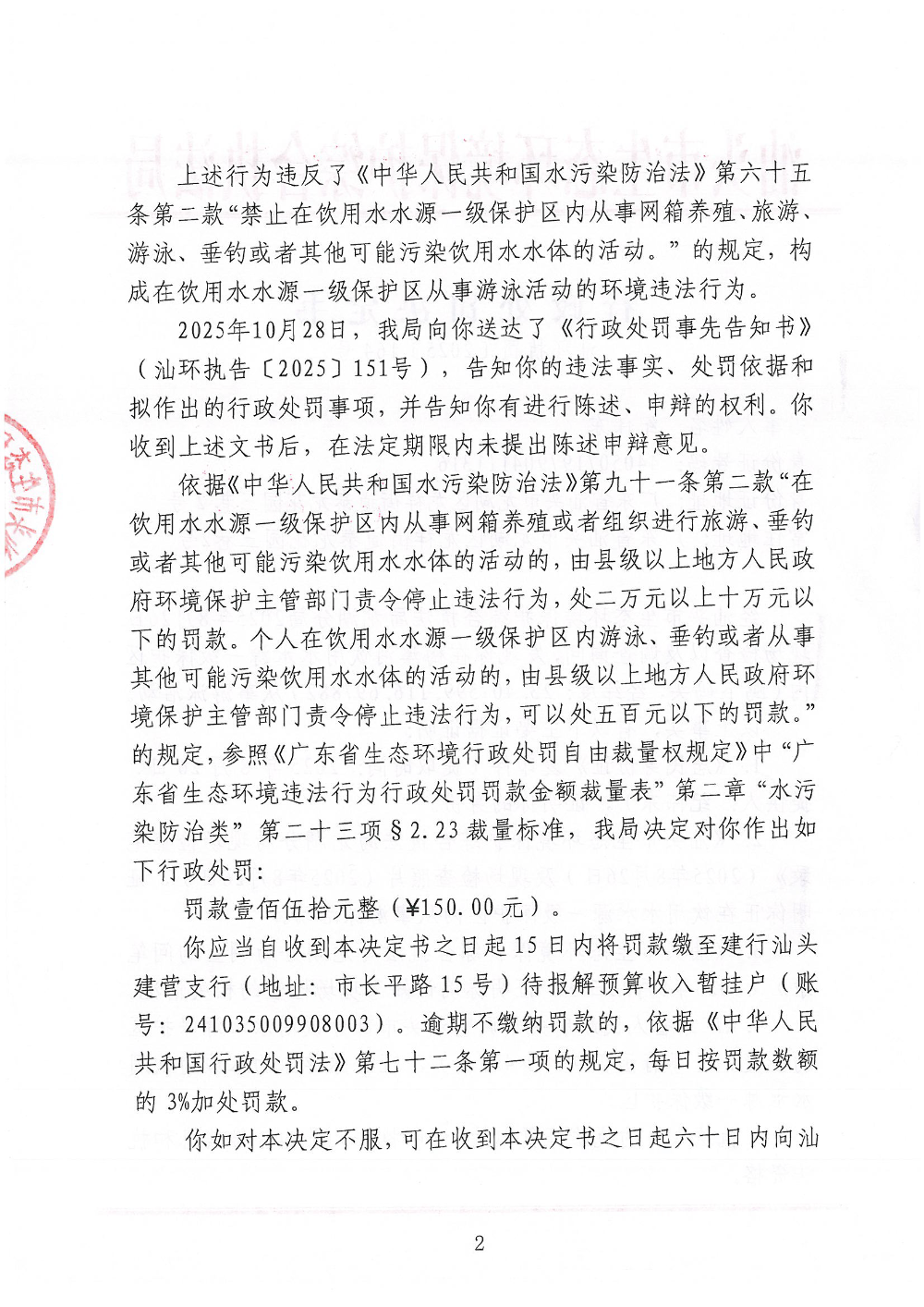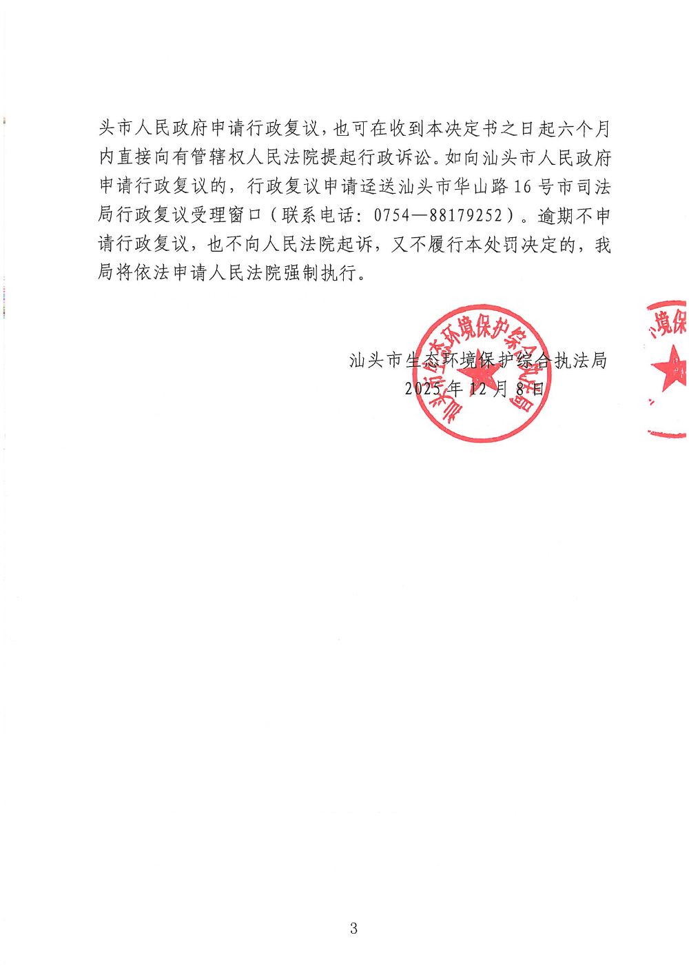 【龙湖】行政处罚决定书(汕环执罚〔2025〕164号)