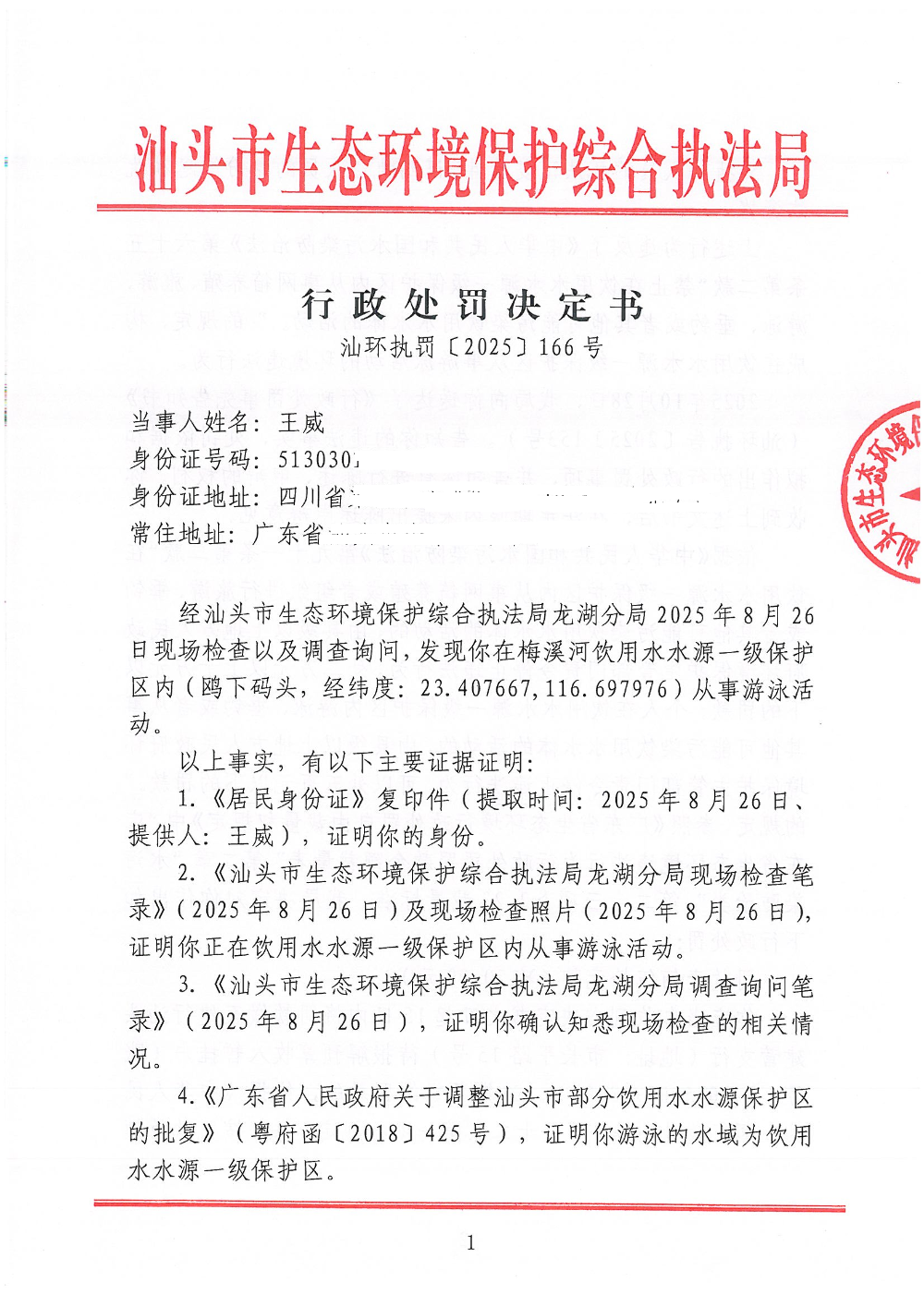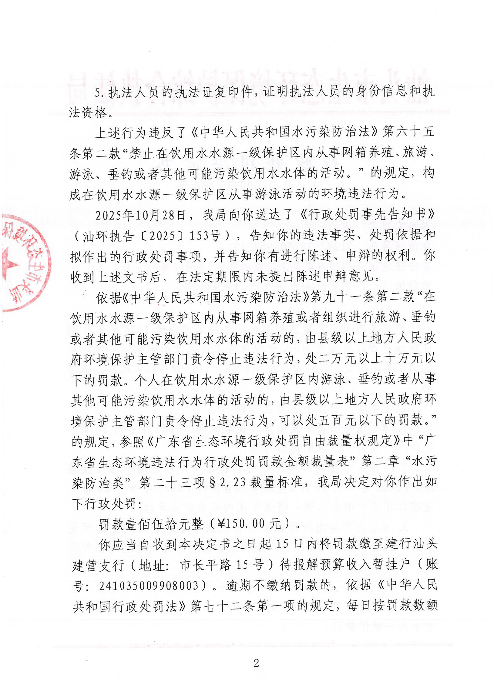 【龙湖】行政处罚决定书(汕环执罚〔2025〕166号)