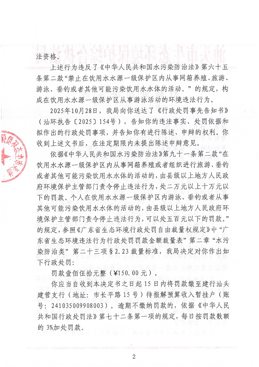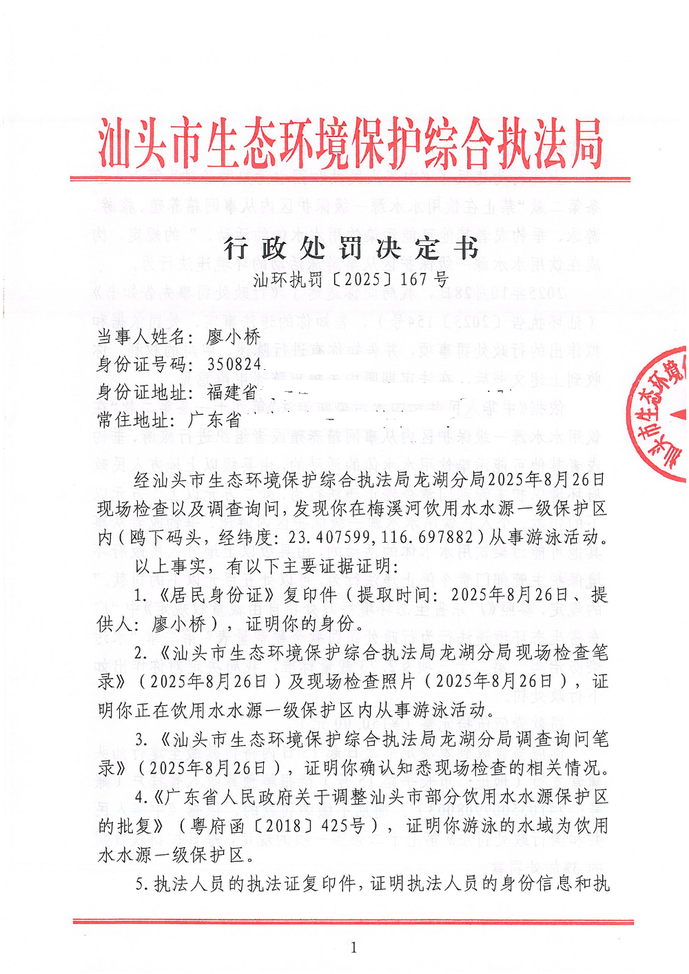 【龙湖】行政处罚决定书(汕环执罚〔2025〕167号)