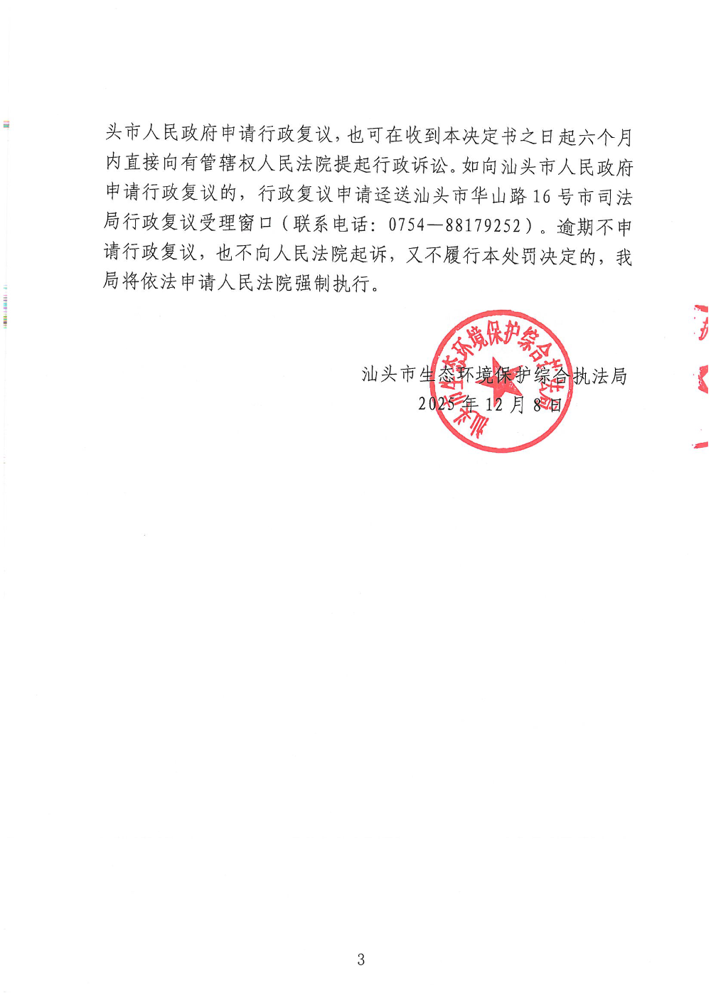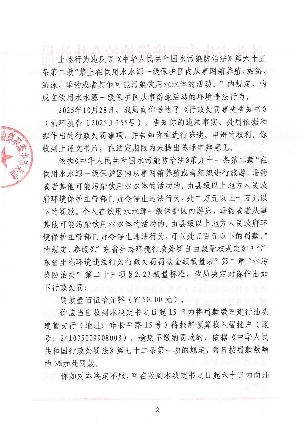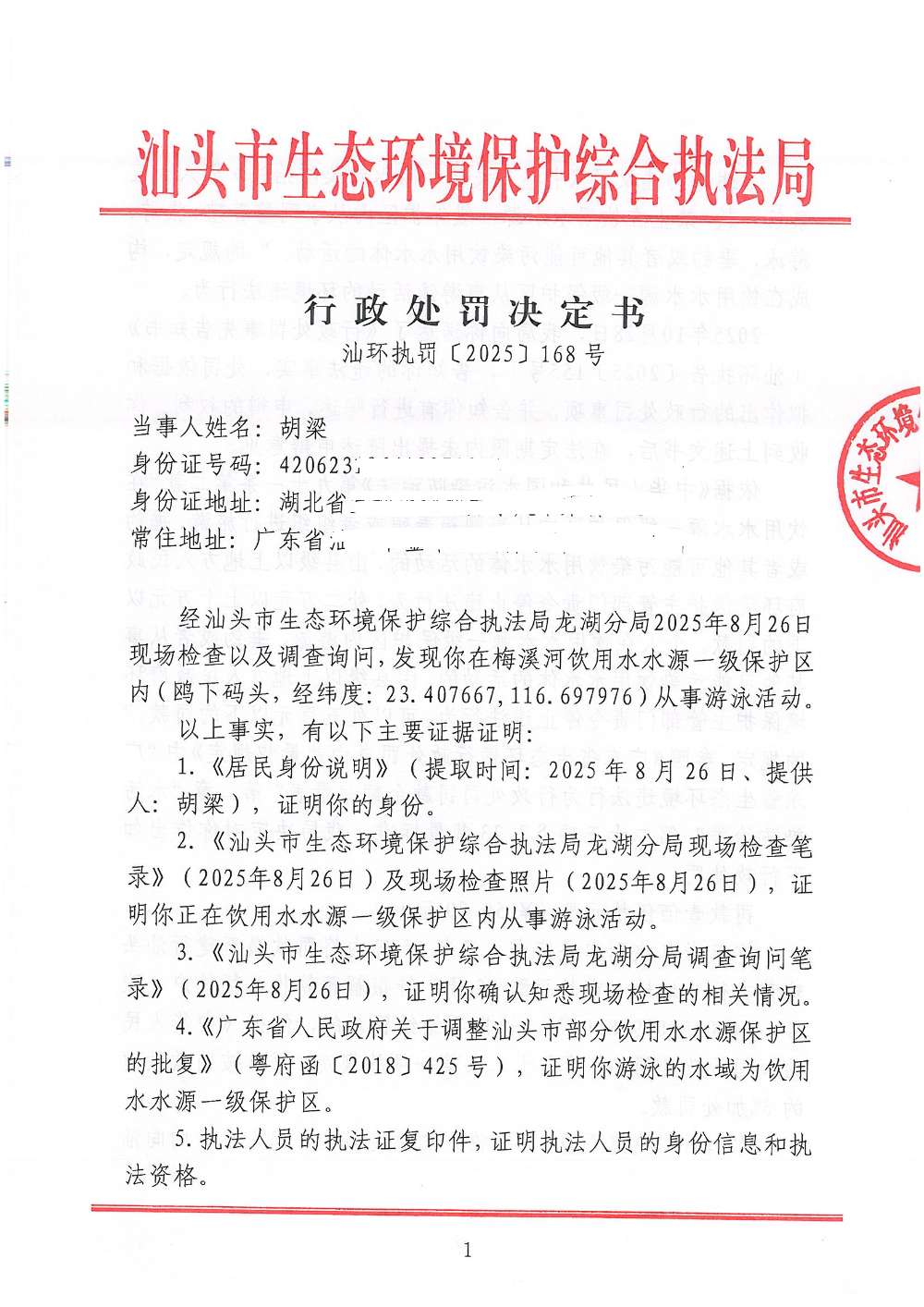 【龙湖】行政处罚决定书(汕环执罚〔2025〕168号)
