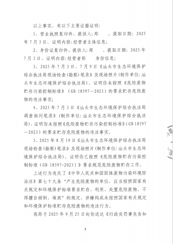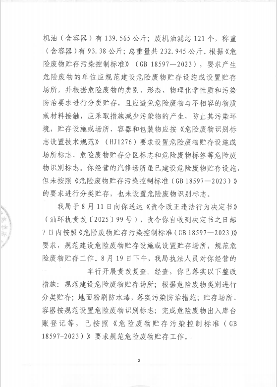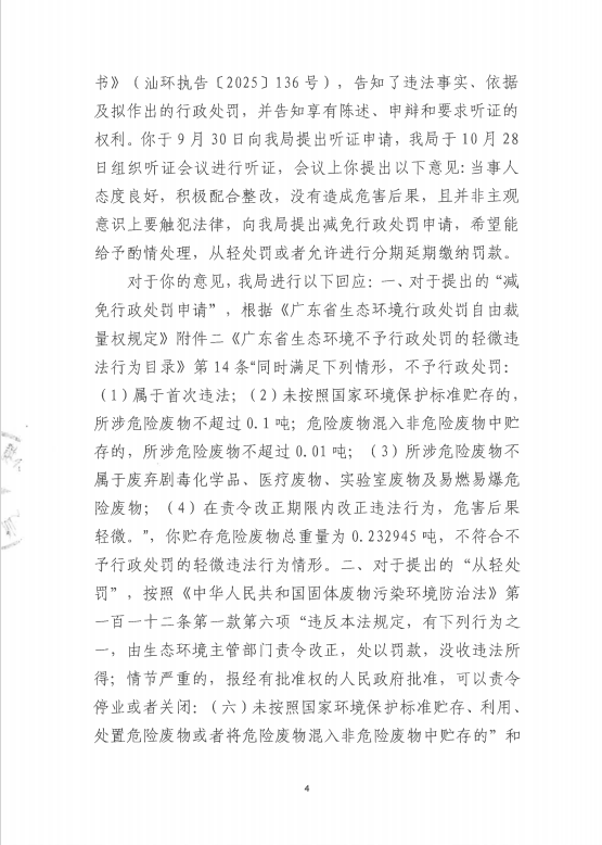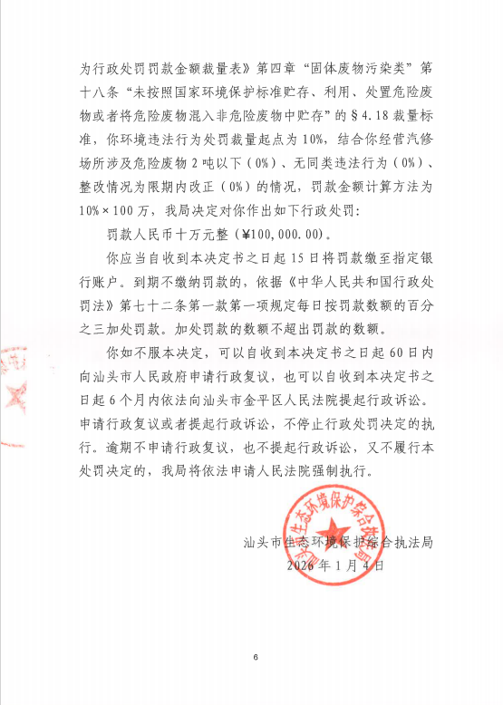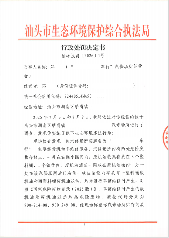行政处罚决定书(汕环执罚〔2026〕1号)