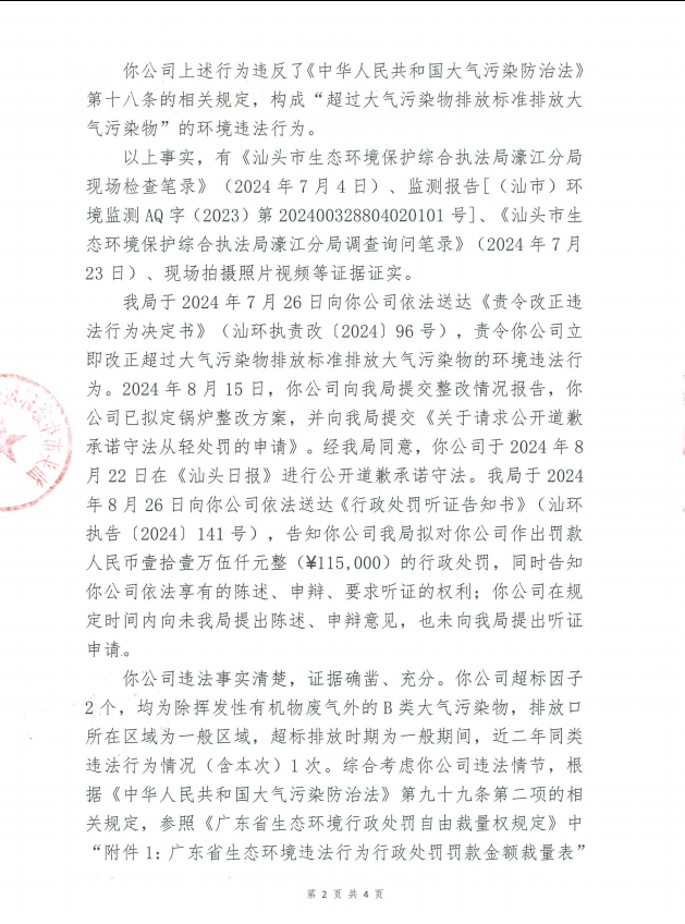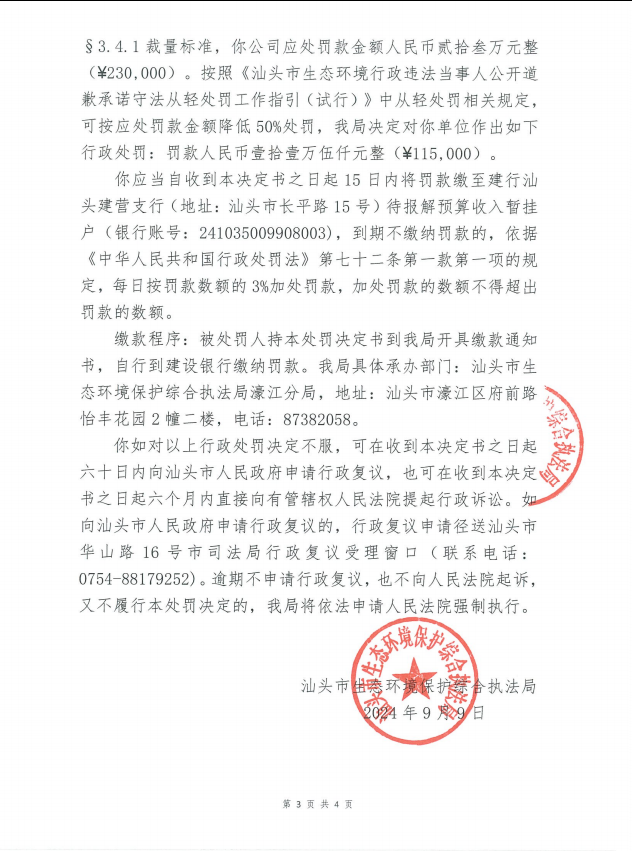 【濠江】行政处罚决定书(汕环执罚〔2024〕133号)