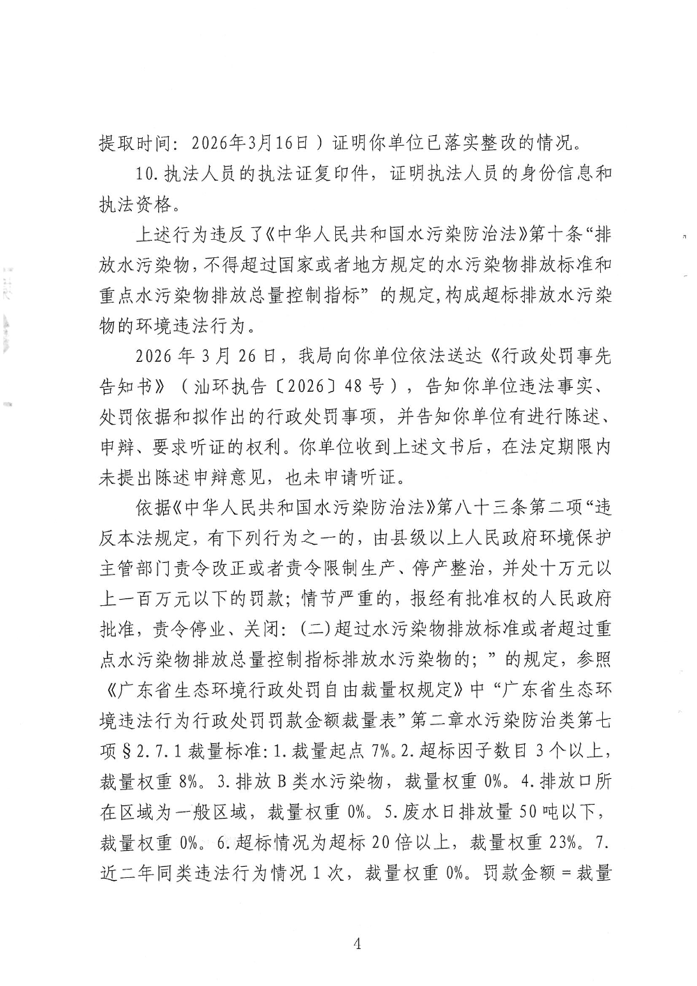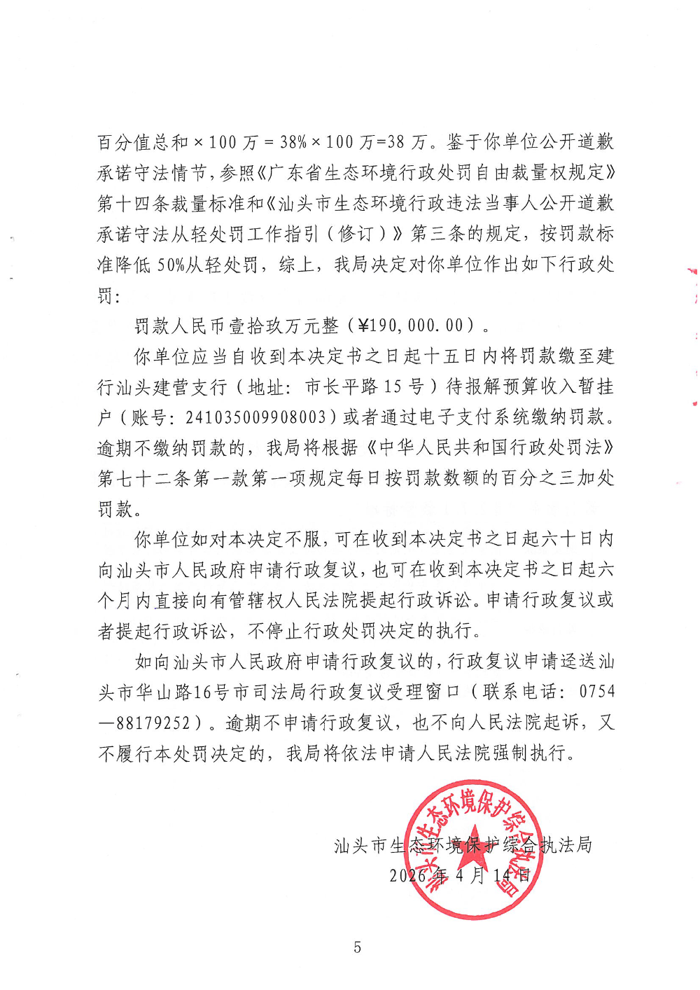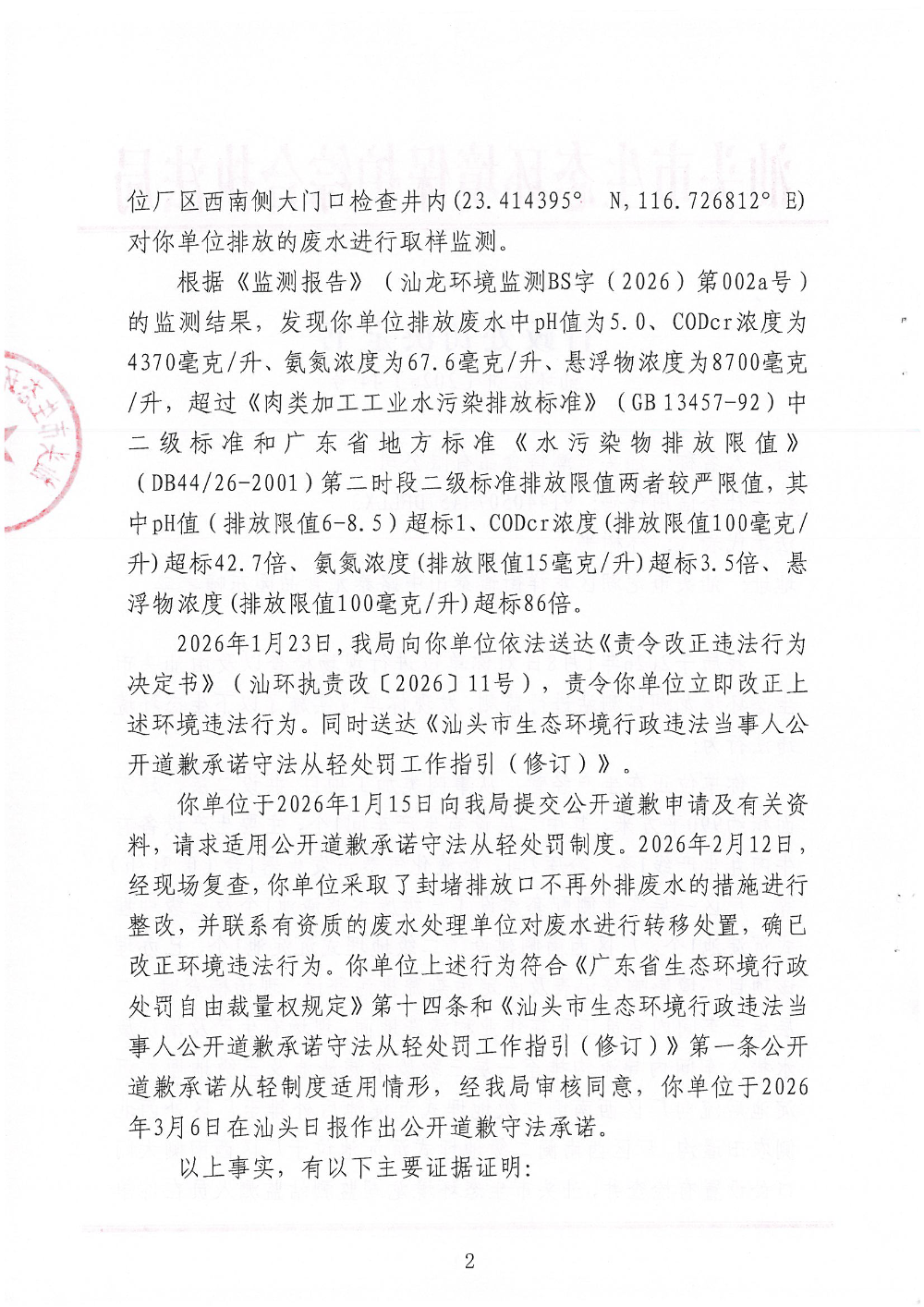 【龙湖】行政处罚决定书(汕环执罚〔2026〕44号)