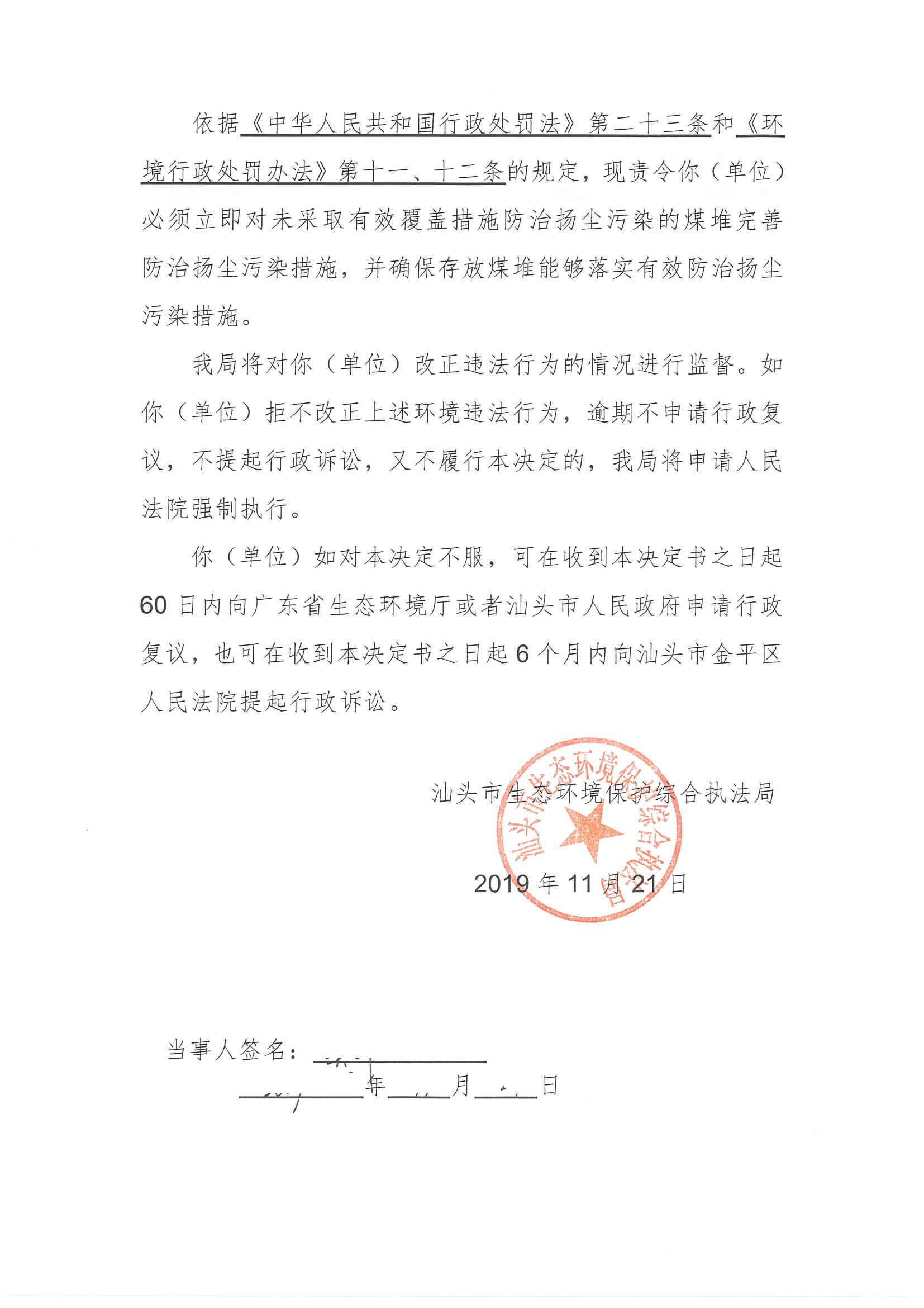 【濠江】责令改正违法行为决定书(汕环执责改字〔2019〕63号)