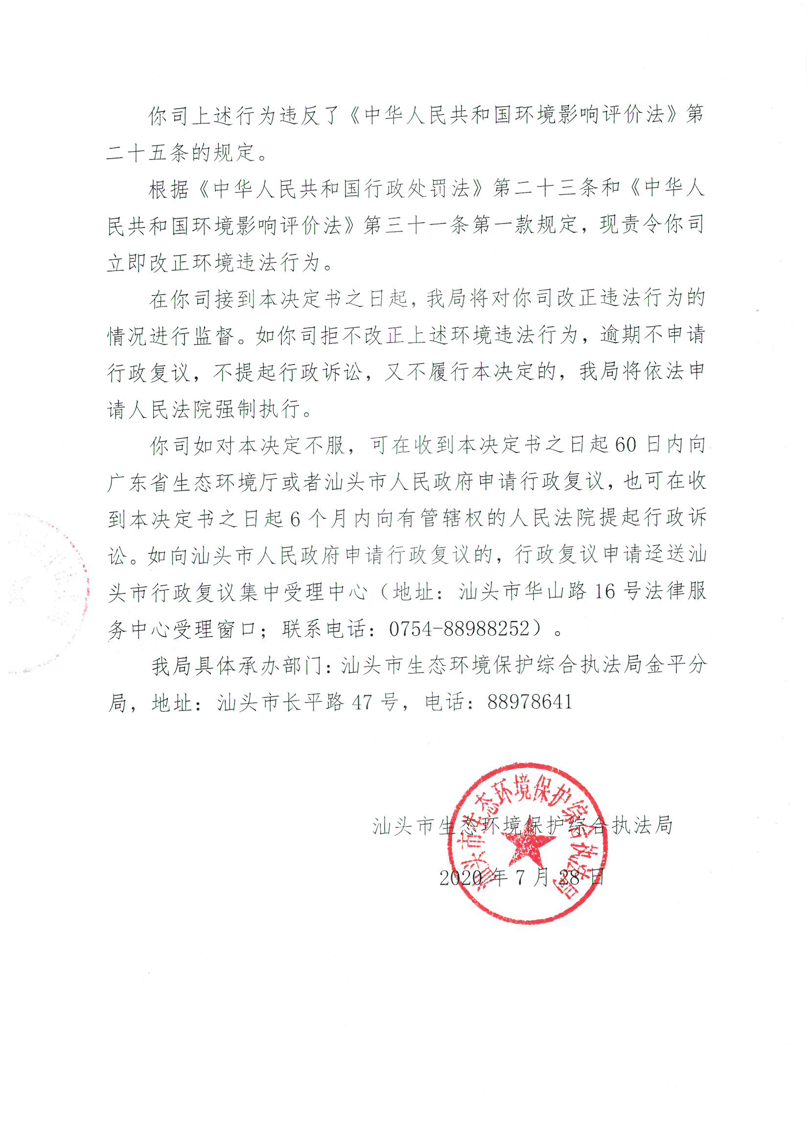 【金平】责令改正违法行为决定书(汕环执责改〔2020〕254号)