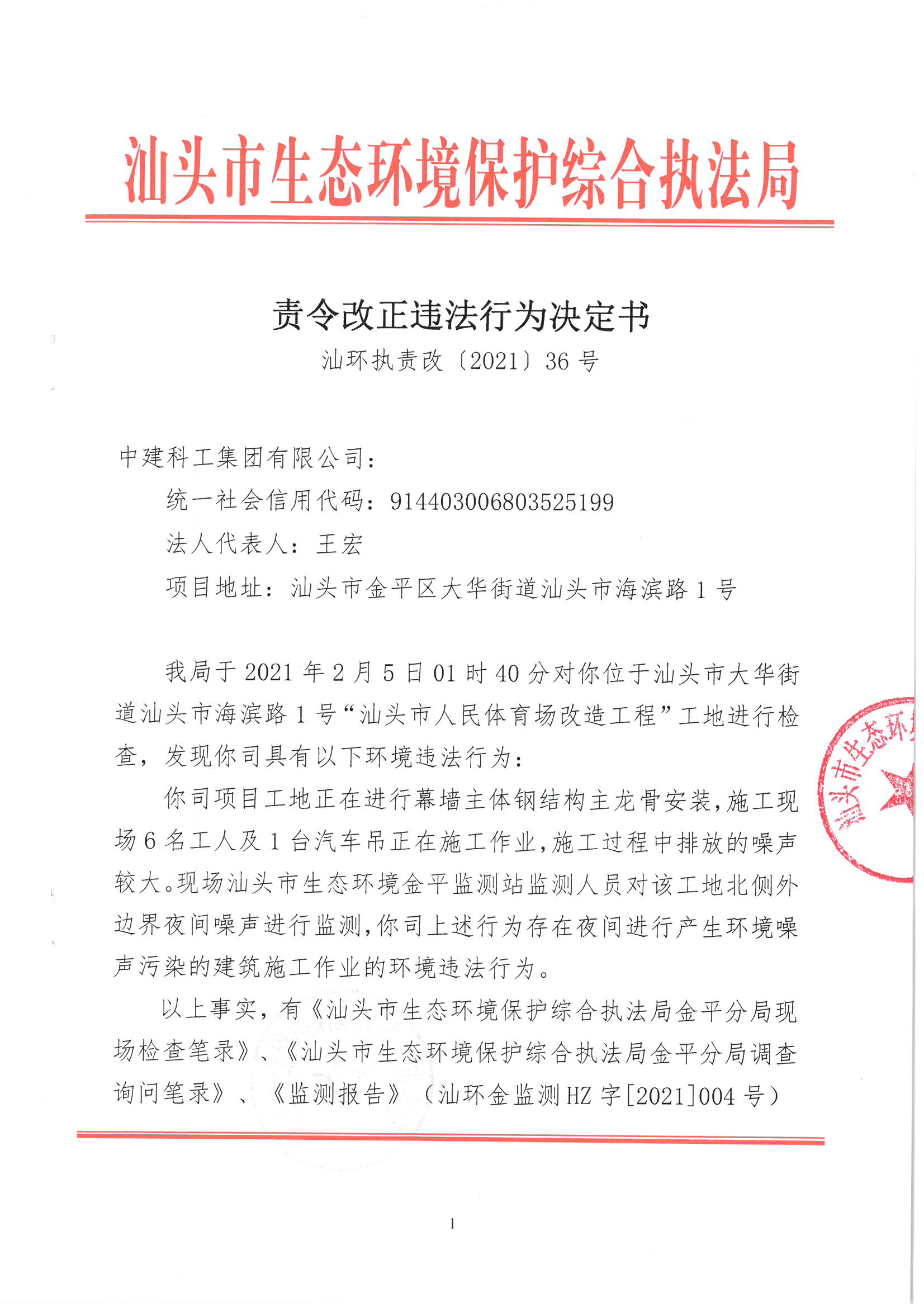 【金平】责令改正违法行为决定书(汕环执责改〔2021〕36号)