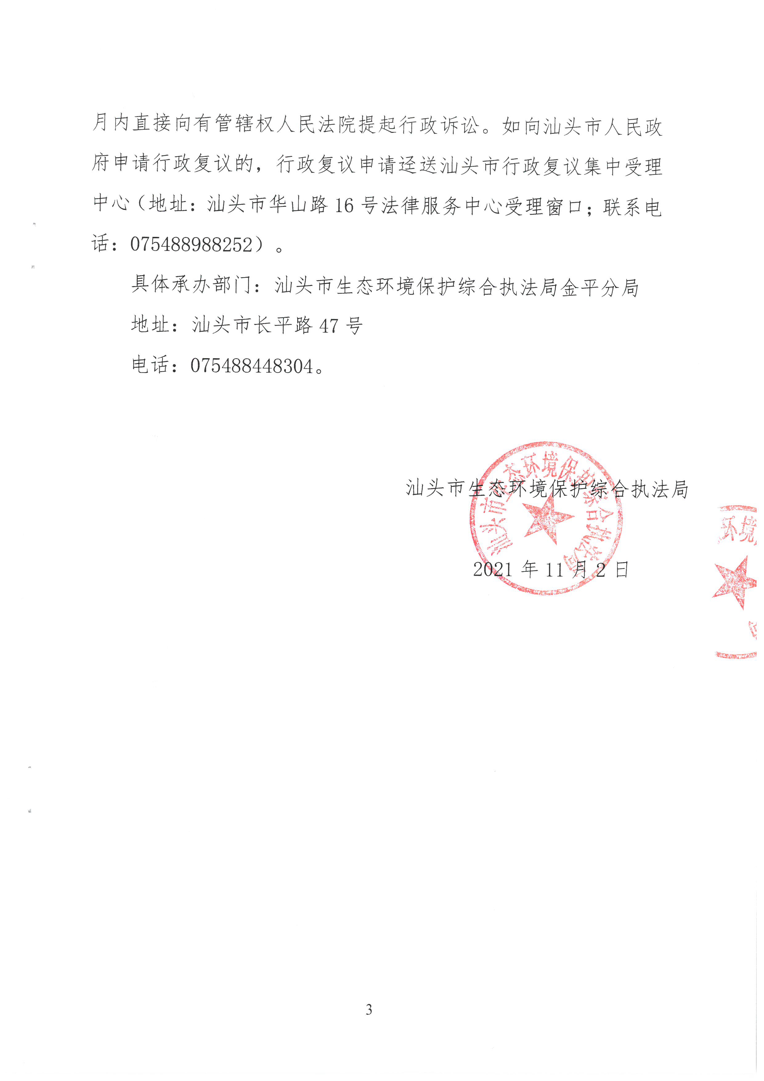 【金平】责令改正违法行为决定书(汕环执责改〔2021〕414号)