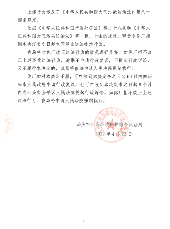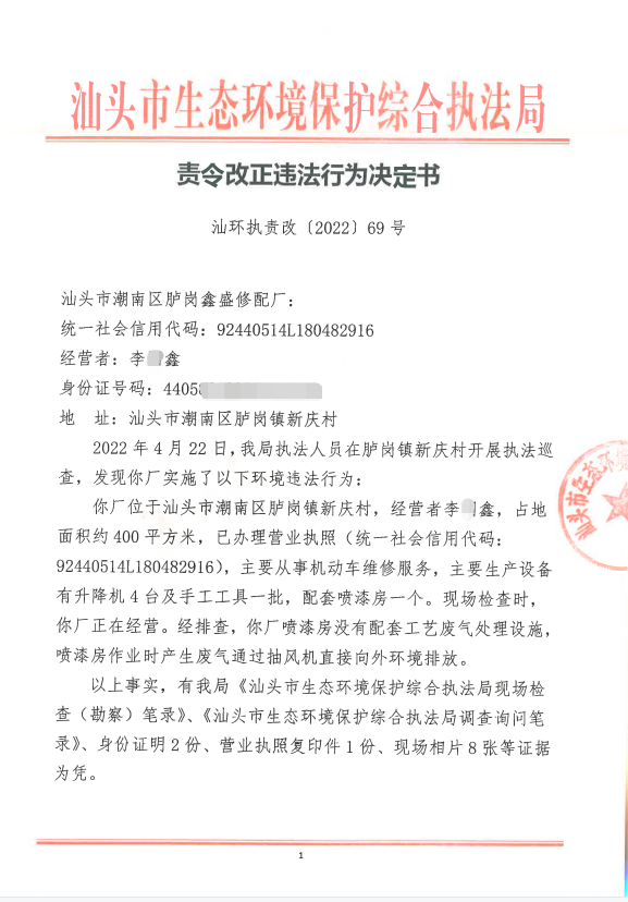 【潮南】责令改正违法行为决定书(汕环执责改〔2022〕69号)