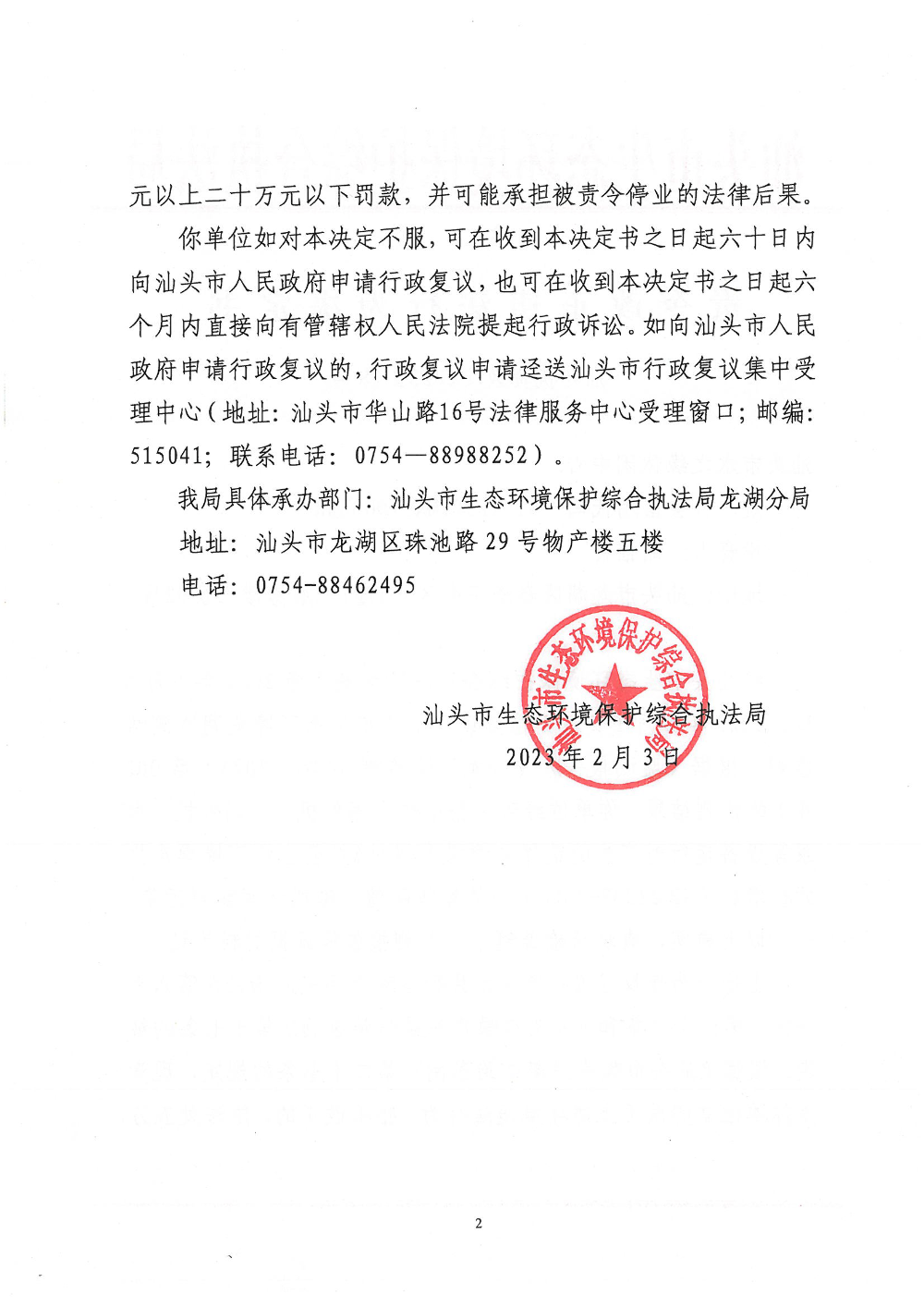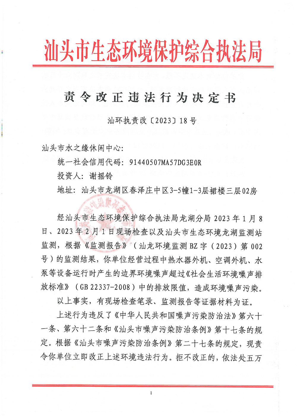 【龙湖】责令改正违法行为决定书(汕环执责改〔2023〕18号)