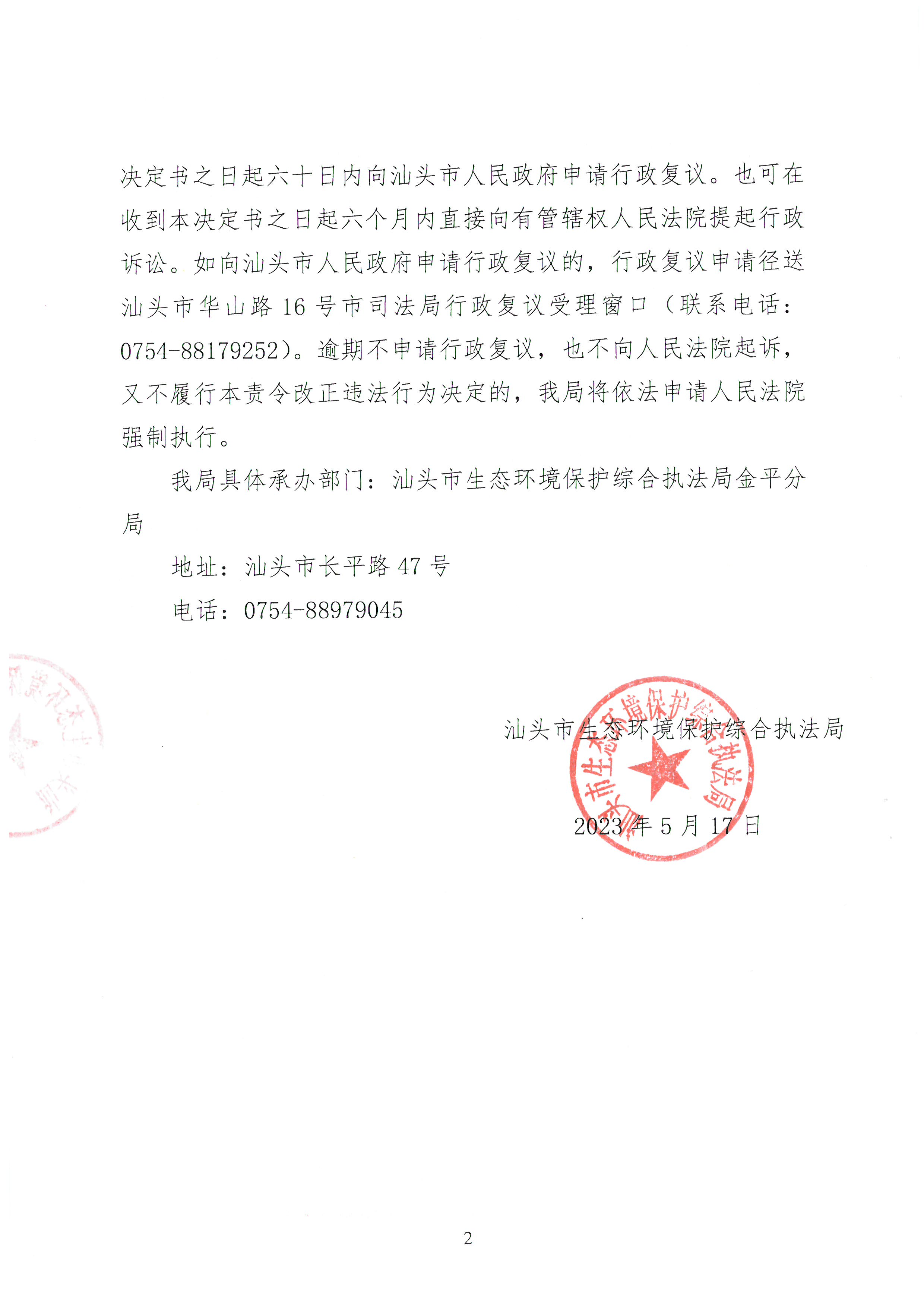 【金平】责令改正违法行为决定书(汕环执责改〔2023〕84号)