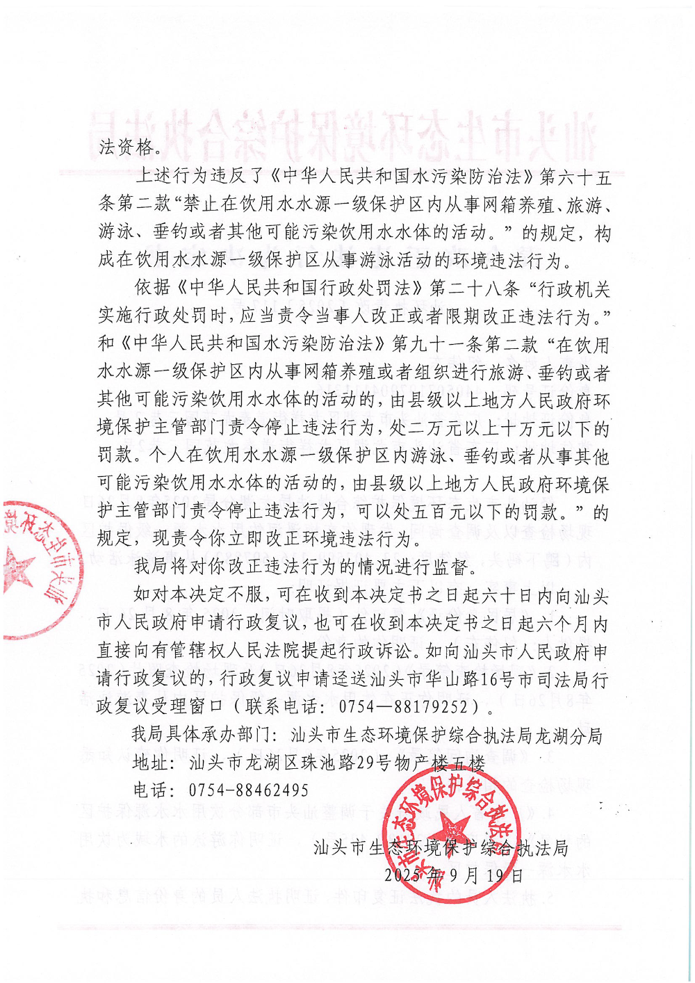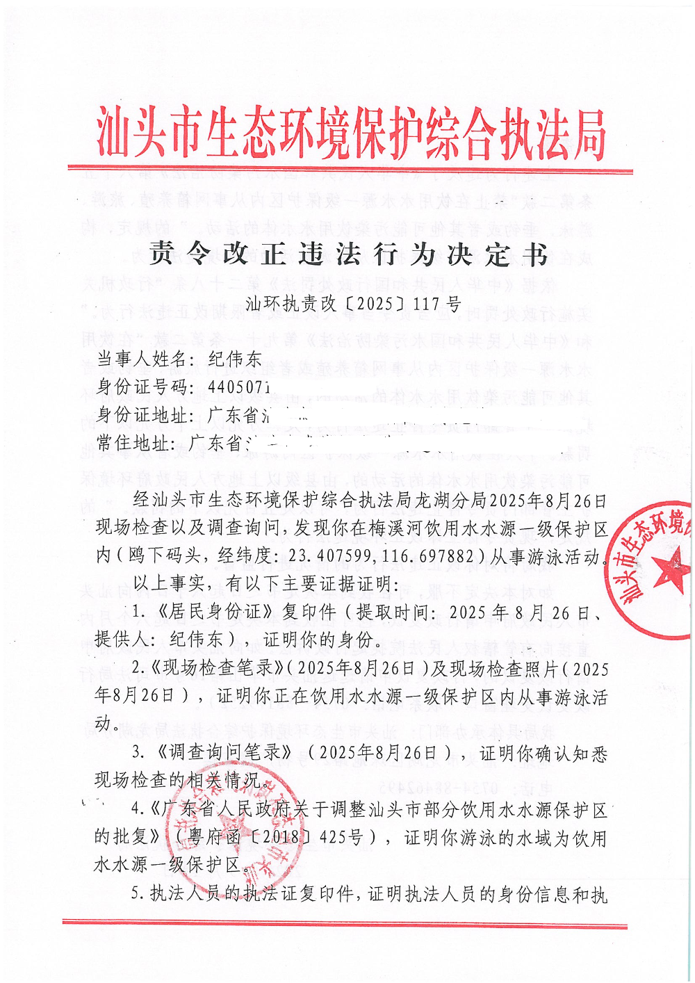 【龙湖】责令改正违法行为决定书(汕环执责改〔2025〕117号)