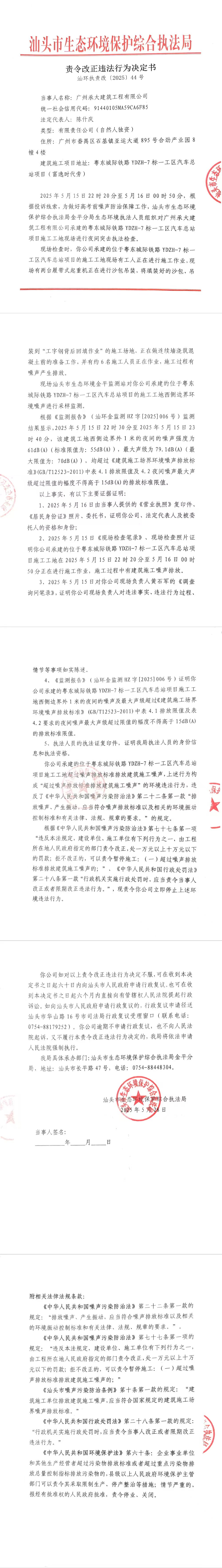 【金平】责令改正违法行为决定书(汕环执责改〔2025〕44)