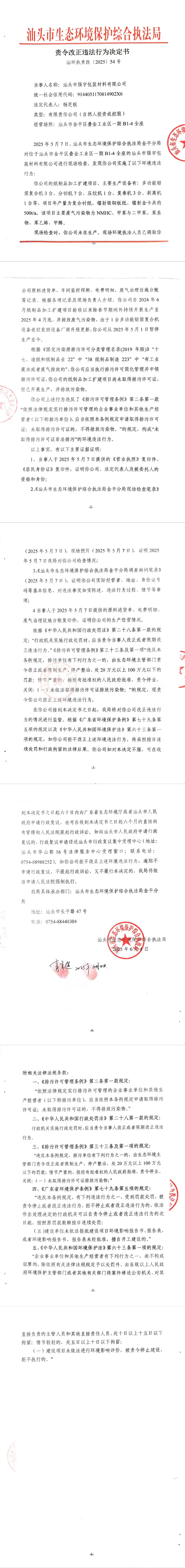 【金平】责令改正违法行为决定书(汕环执责改〔2025〕54)