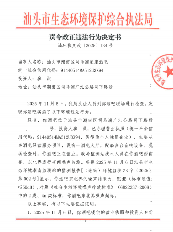【潮南】责令改正违法行为决定书(汕环执责改〔2025〕134号)