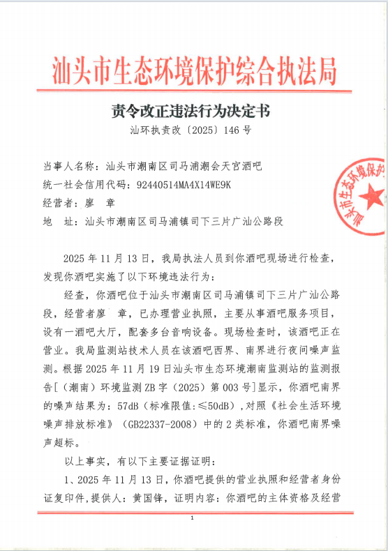 【潮南】责令改正违法行为决定书(汕环执责改〔2025〕146号)