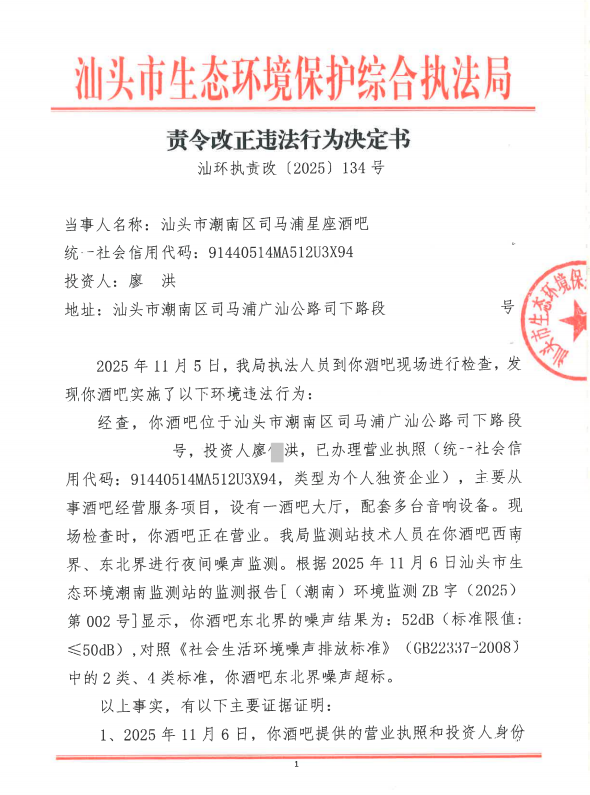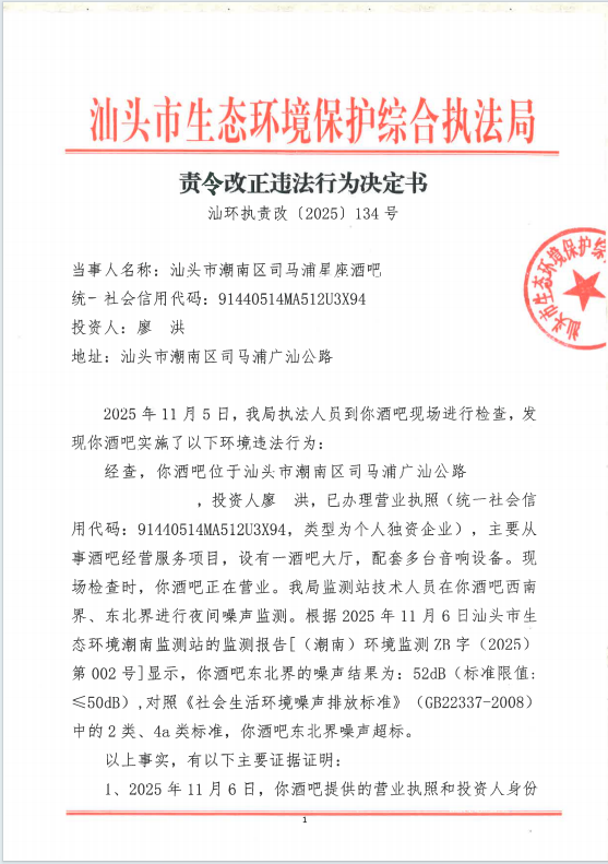 【潮南】责令改正违法行为决定书(汕环执责改〔2025〕134号)