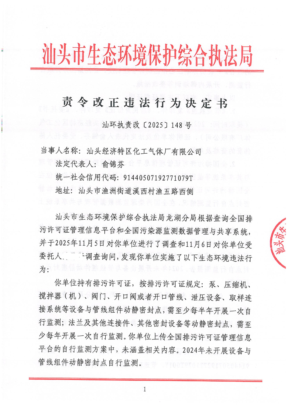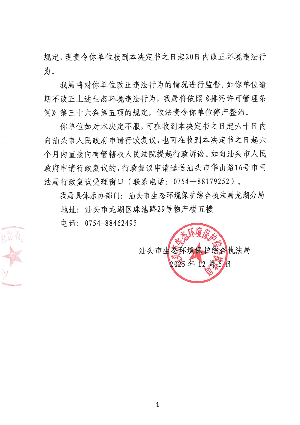 【龙湖】责令改正违法行为决定书(汕环执责改〔2025〕148号)