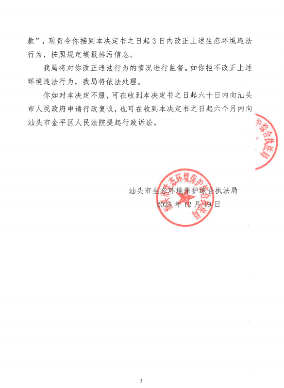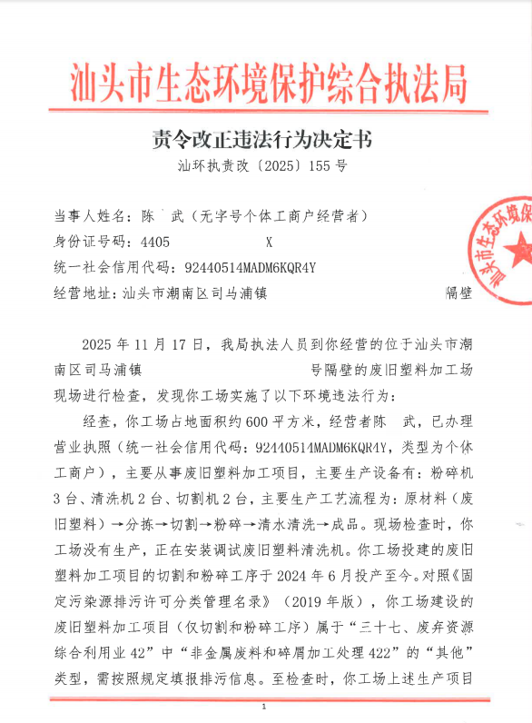 【潮南】责令改正违法行为决定书(汕环执责改〔2025〕155号)