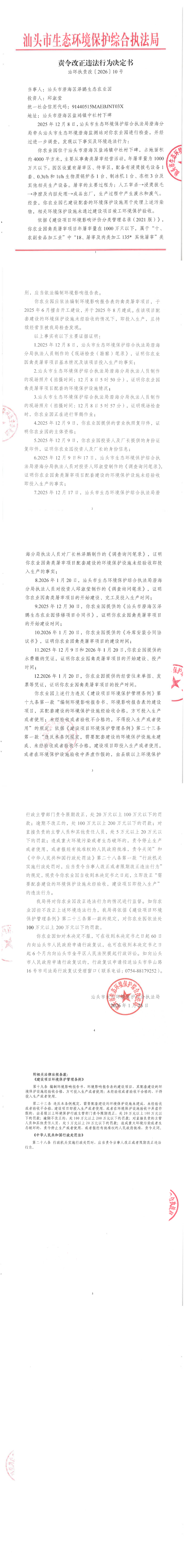 【澄海】责令改正违法行为决定书(汕环执责改〔2026〕10号)