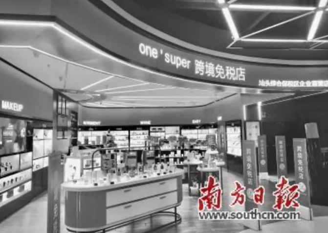 正值年货节,汕头群光广场内新生活超市客流很旺,位于超市入口的跨境免税店陈列着来自全球各地的商品。这是汕头综合保税区正式启动的粤东首个跨境电商“前店后仓”项目。将跨境免税店与中高端精品超市结合,既可以通过“1210”跨境电商网购保税方式进货,降低商品成本,又保留传统超市的实货体验,成为汕头“保税+实体新零售”的一个创新。