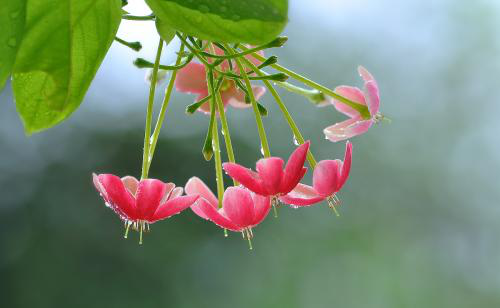 使君子植物具有很高的观赏价值,属攀援状灌木,高2-8米,生性喜欢温暖湿润的生长环境。使君子植物的花朵美丽鲜艳,并且具有清香,绿绿的叶子,十分好看。使君子的开花较为奇特,初开时可以看见近乎白色的花朵,渐渐地变成粉色,再变为艳丽的红色。有时候使君子花开,可以在一株上看见红、粉和白几种颜色的花朵,十分别致。