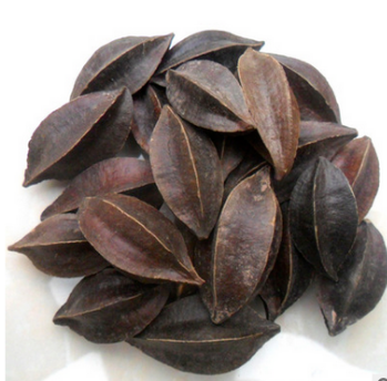 使君子别名又叫留球子,川君子,建君子,五棱子,索子果等,药用部位为使君子科植物使君子Quisqualis indica L.的干燥成熟果实。果实呈椭圆形或卵圆形,具有5条纵棱,偶有4~9棱,长2.5~4cm,直径约2cm,表面黑褐色至紫黑色,平滑,微有光泽。质坚硬,横切面多呈五角星形。里面种子长椭圆形式纺锤形。气微香,味微甜。秋季果皮变紫黑色时采收,除去杂质,干燥,用时捣碎。[1]