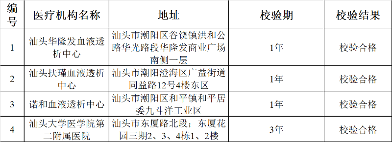 根据《医疗机构管理条例》《医疗机构管理条例实施细则》《医疗机构校验管理办法(试行)》和《广东省卫生厅关于医疗机构不良执业行为记分的试行管理办法》,对我局发证并在2023年1月1日至2023年4月28日期间达到校验期的医疗机构进行校验审查,现将通过校验的医疗机构名单公告如下: