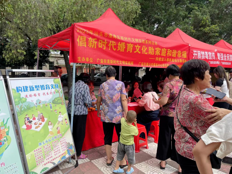 澄海区各地计生协近期陆续开展“倡新时代婚育文化 助家庭和谐幸福”宣传服务活动。通过宣传海报展示、发放宣传资料及咨询等形式,引导广大群众正确认识优化生育政策的重大意义,加强群众婚恋观、家庭观,倡导尊重生育的社会价值,提倡适龄婚育、性别平等、夫妻共担、代际和谐,培育新时代婚育文化,破除高价彩礼等婚嫁陋习,营造生育友好的社会氛围。同时也广泛动员社会各界人士积极参与“一元爱心捐助”活动。