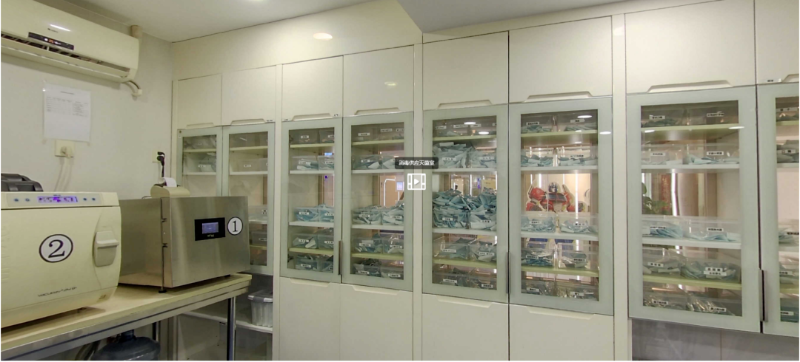 (3)应有明确的无菌物品和清洁物品存放间/柜,诊室内器械回收盒和医疗废物收集容器分类放置,设计合理,并配备有非接触式洗手设施。