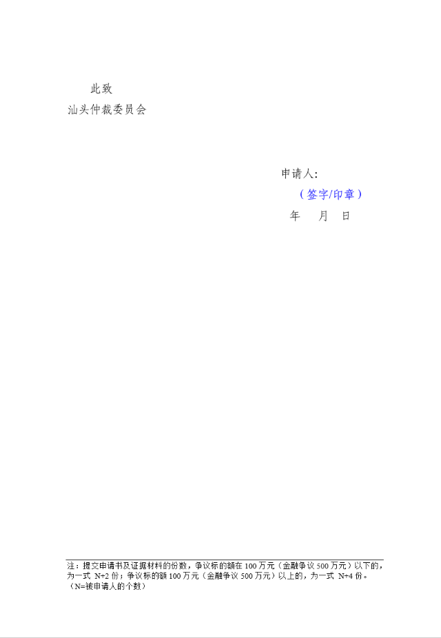 仲裁申请书和证据清单(立案必填)